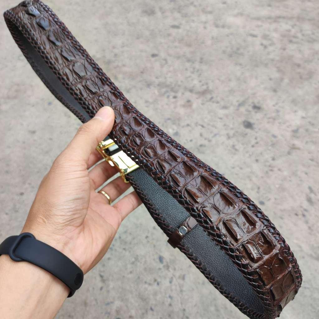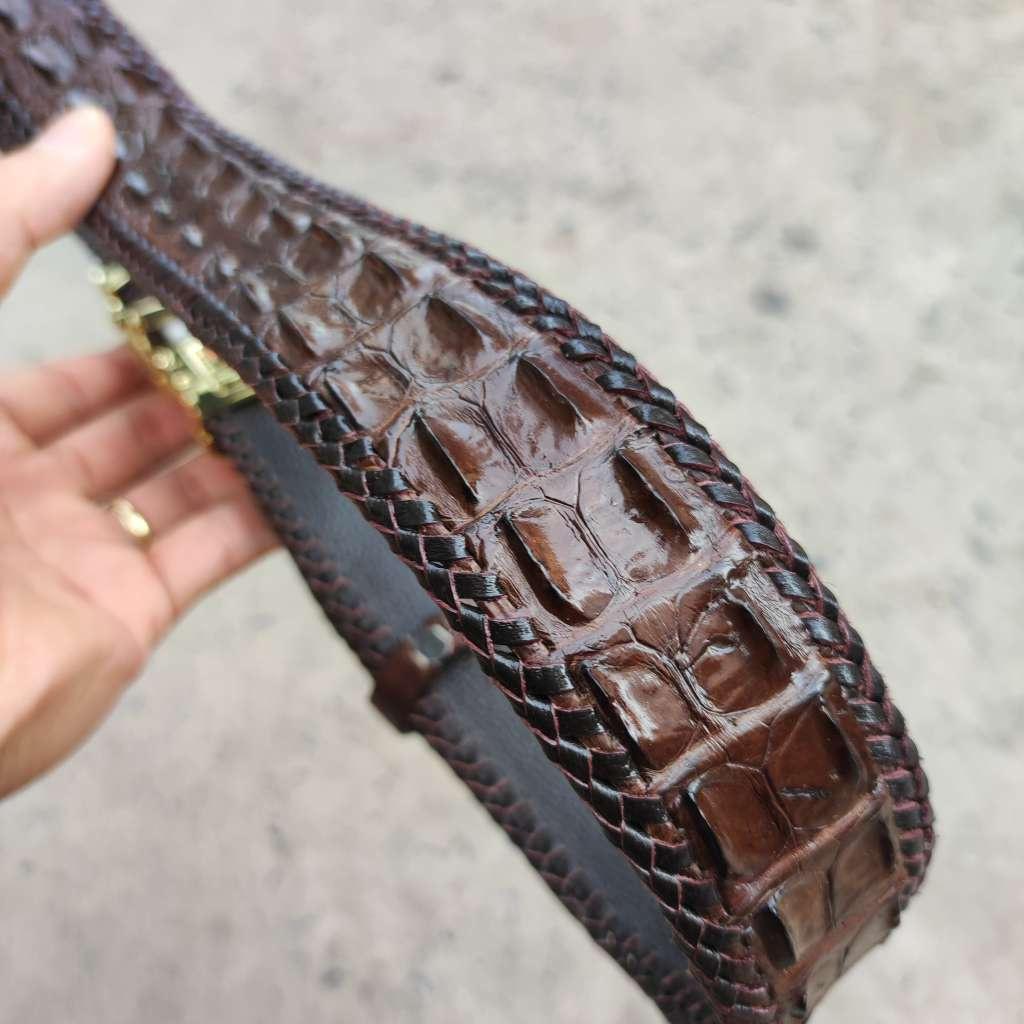 Dây thắt lưng được làm từ da lưng cá sấu nguyên con rất đẹp. Từ gai lưng chạy xuống vây đuôi của cá tạo nét nổi bật riêng, vây được ép nhiệt sát da nên hạn chế vướng víu khi sử dụng. Hai bên được đan viền thủ công tinh tế