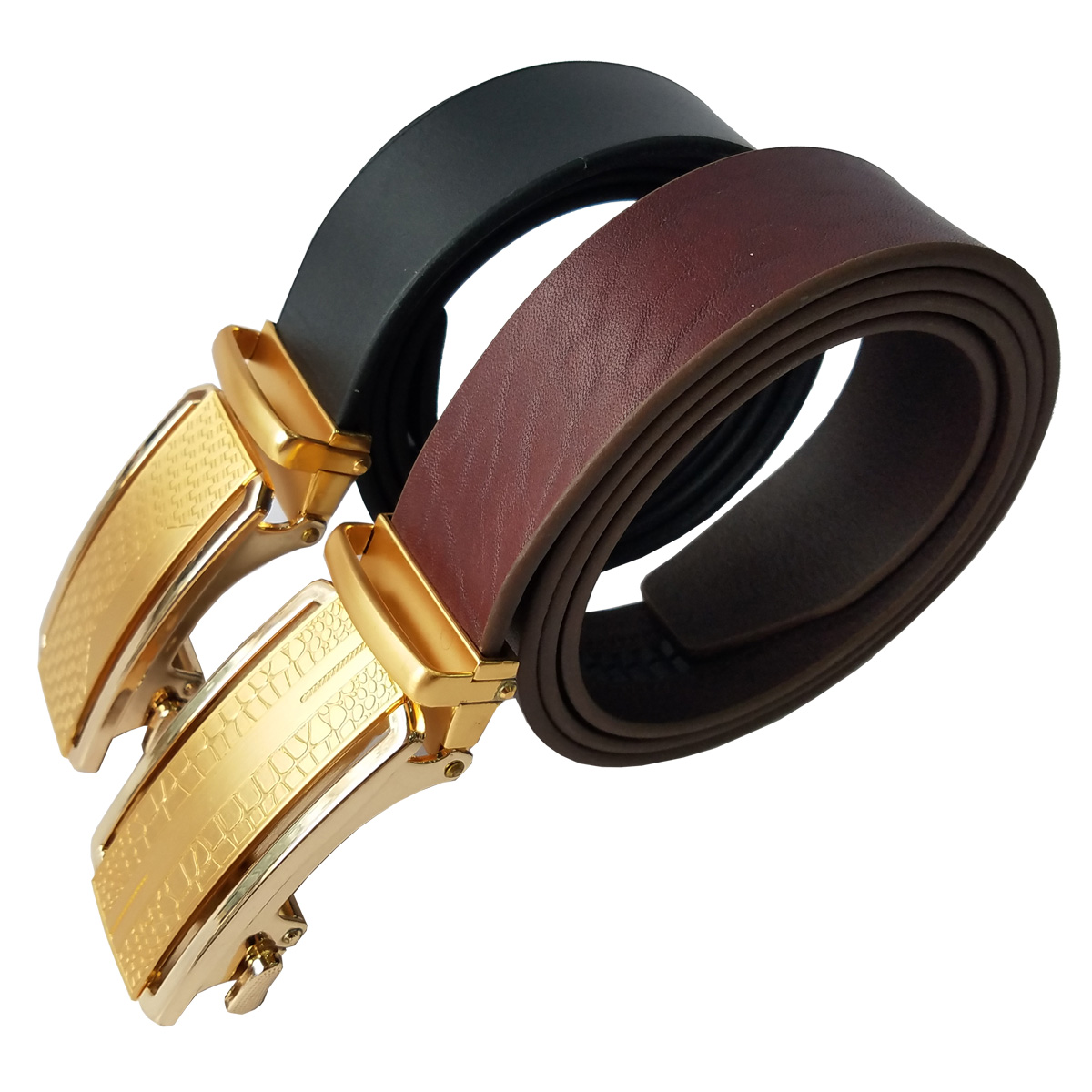 Thắt lưng nam da thật mặt khóa tự động bằng thép sáng bóng không gỉ