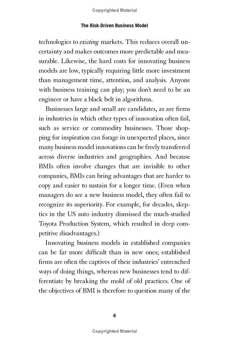 The Risk-Driven Business Model will help you manage risk better by showing how the key choices you make in designing your business models either increase or reduce two characteristic types of risk—information risk, when you make decisions without enough information, and incentive-alignment risk, when decision makers’ incentives are at odds with the broader goals of the company. Leaders who understand how the structure of their business model affects risk have the power to create wealth, revolutionize industries, and shape a better world.