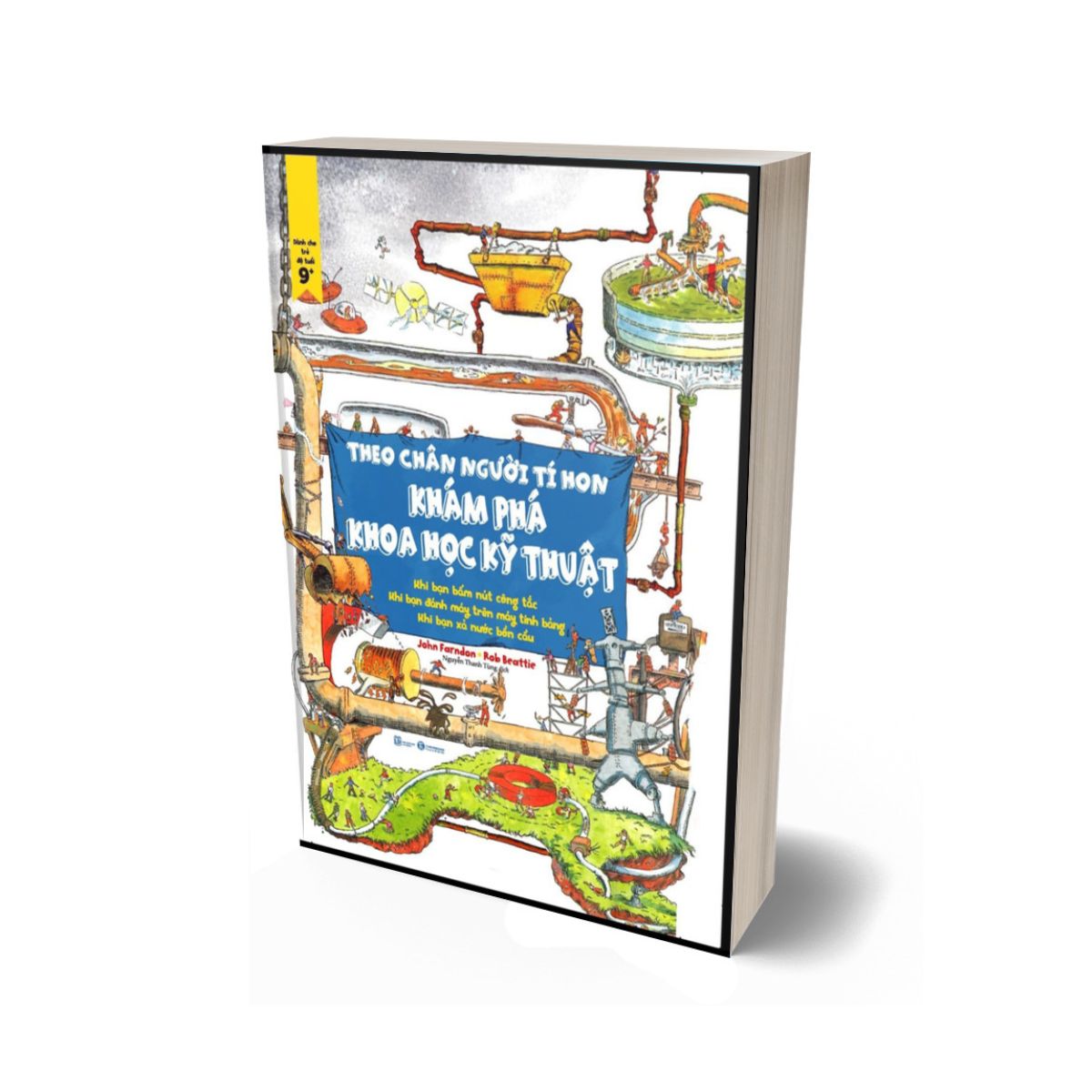 Khám Phá Khoa Học Kỹ Thuật là một trong bộ ba sách khoa học Theo Chân Người Tí Hon, cuốn sách có minh họa tuyệt vời, đưa chúng ta tìm hiểu cụ thể về cấu tạo và cách hoạt động của những máy móc xung quanh chúng ta, các sơ đồ lớn, đầy màu sắc được làm sống động bởi những người tí hon chạy xung quanh vận hành.