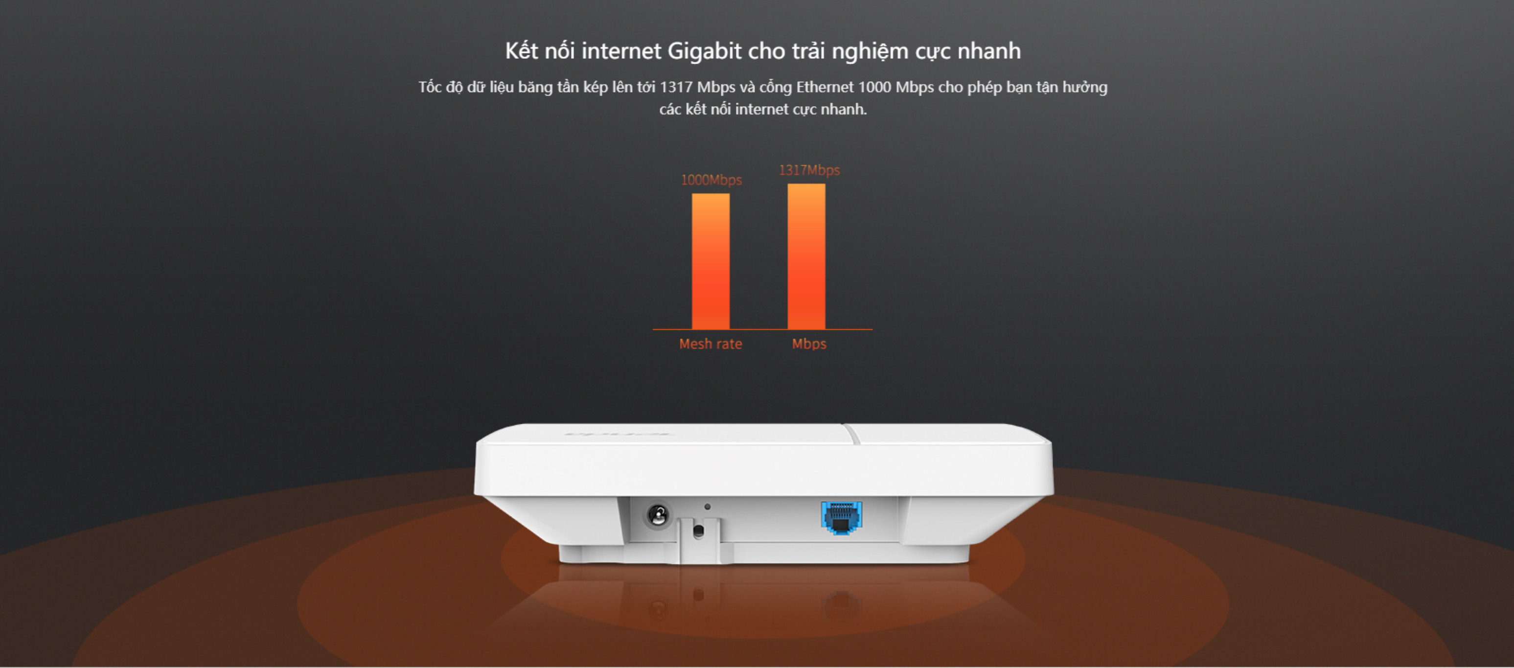 MÔ TẢ SẢN PHẨM Thông số sản phẩm - Bộ phát Wifi ốp trần hoặc gắn tường - Tốc độ lên đến 1775Mbps. - Hỗ trợ 2 băng tần 2.4GHz và 5GHz. - Chuẩn 802.11a/b/g/n/ac