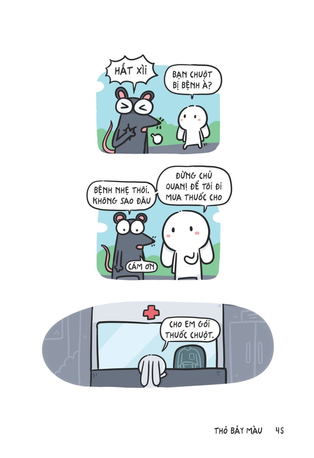 Thỏ Bảy Màu đơn giản chỉ là một con thỏ trắng với sự dở hơi, ngang ngược nhưng đáng yêu vô cùng tận. Nó luôn nghĩ rằng mình không có cuộc sống và không có bạn bè. Tuy nhiên, Thỏ lại chẳng bao giờ thấy cô đơn vì đến cô đơn cũng bỏ nó mà đi.