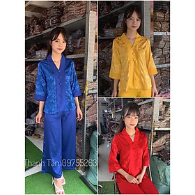 Chất Vải Lụa Pháp Phối Gấm Cao Cấp Hoặc Vải Lụa Phối Gấm Tuỳ Màu Và Size Nên Chất Vải Khác Nhau Quần Ống Rộng Cổ Áo Chui Không Cài Nút BÁN LẺ GIÁ SỈ