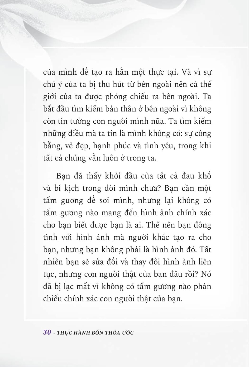Trong cuốn sách thực hành bạn đang cầm trên tay, trước khi nói về việc áp dụng Bốn Thỏa ước, chúng ta sẽ đi sâu khám phá về nhận thức. Ta muốn nhận thức được điều gì? Trong Phần I, chúng ta tập trung vào ba điều: