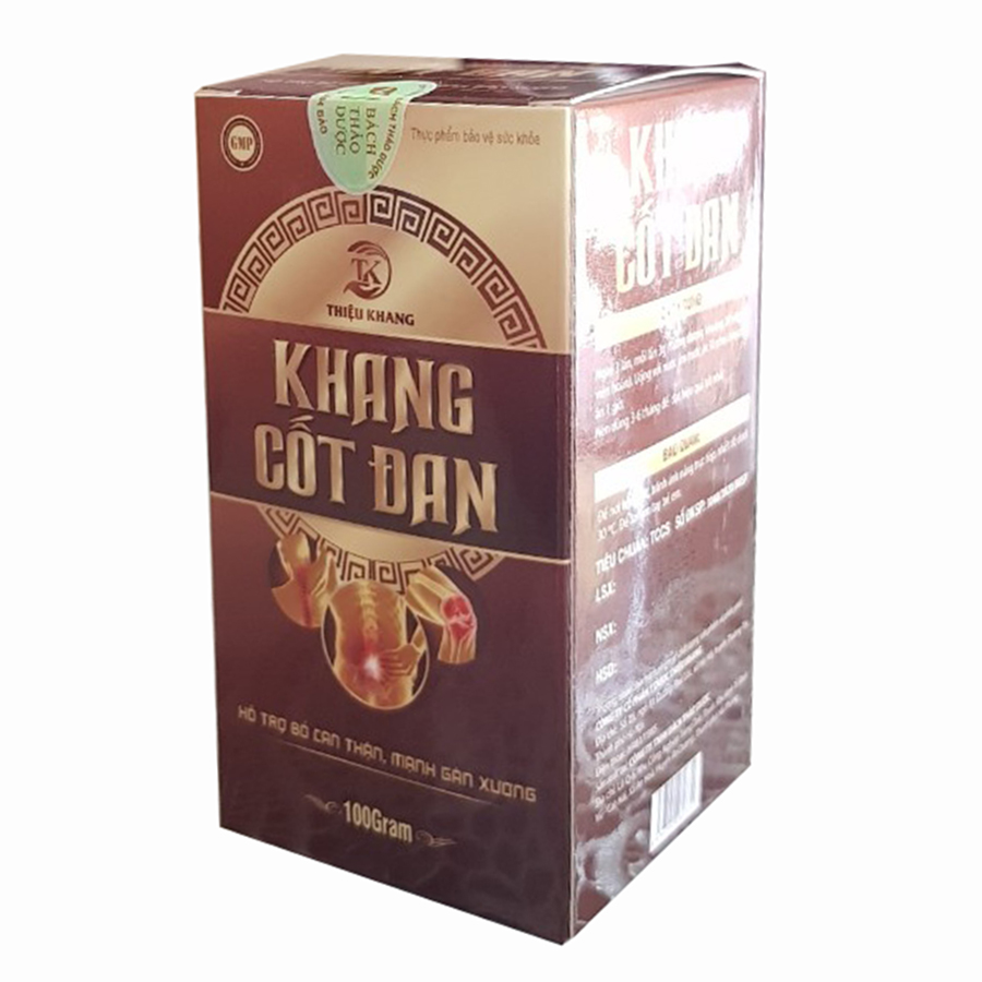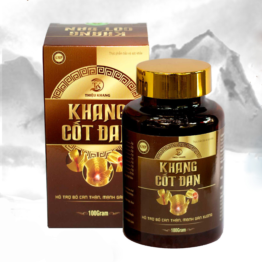 Thực phẩm bảo vệ sức khỏe KHANG CỐT ĐAN (hộp 100g) Khang Cốt Đan là sản phẩm bảo vệ sức khỏe được nghiên cứu và ứng dụng bởi Công ty Cổ phần Y dược Thiệu Khang.