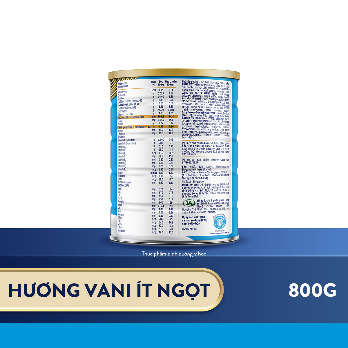✨Thực phẩm dinh dưỡng y học Ensure Gold hương vani ít ngọt 800g/850g