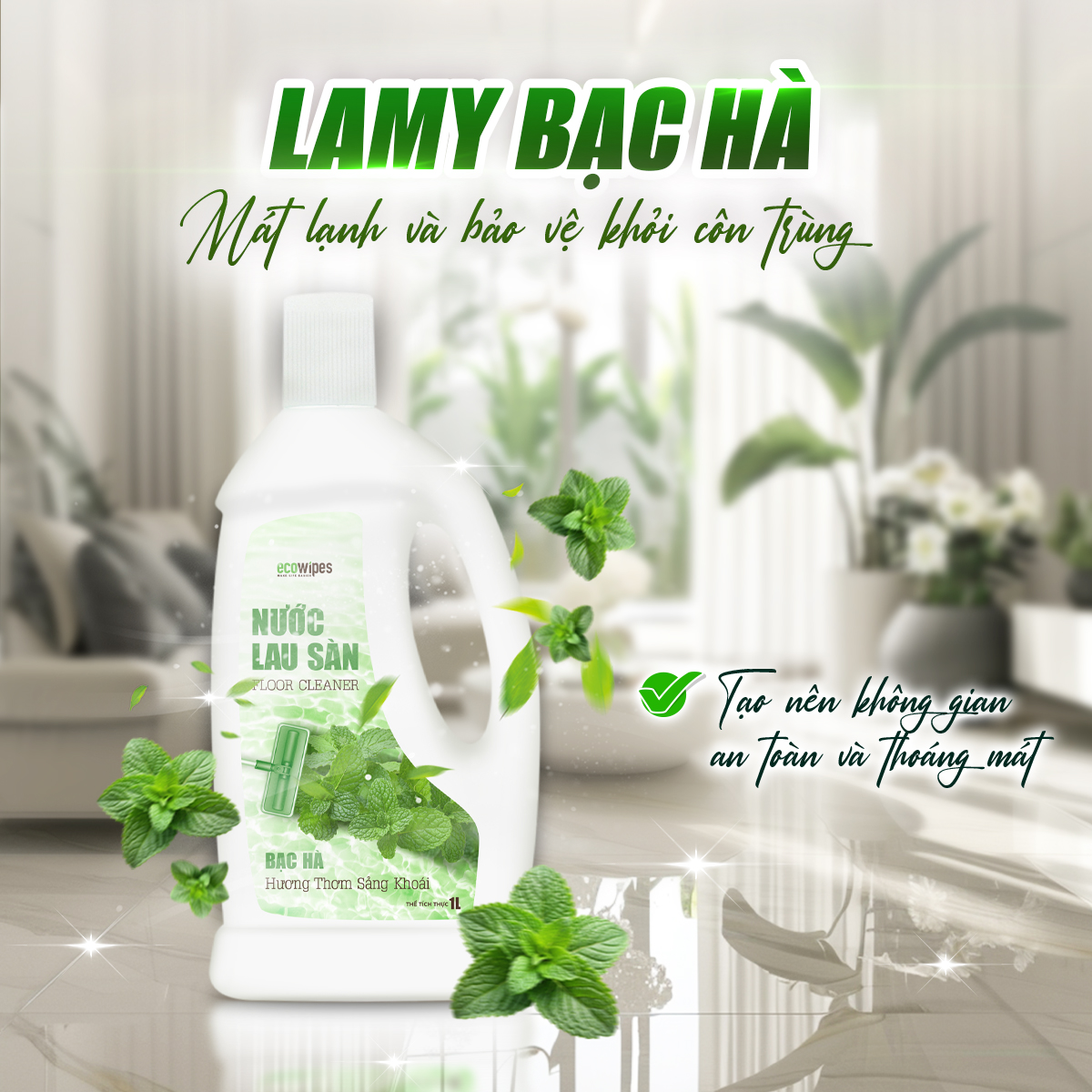 Nước lau sàn EcoWipes là lựa chọn hoàn hảo cho những ai mong muốn không gian sống sạch sẽ, an toàn và tươi mát. Sản phẩm kết hợp công nghệ làm sạch tiên tiến với các thành phần thân thiện với môi trường, mang đến giải pháp vệ sinh tối ưu cho mọi loại sàn nhà.