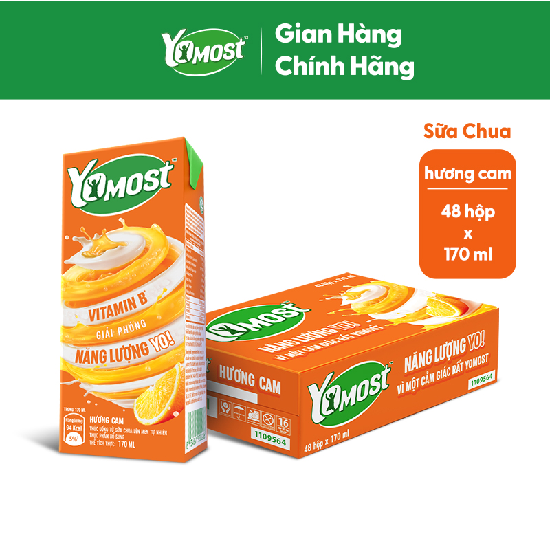 - Thùng 48 Hộp Sữa Chua Lên Men Tự Nhiên Yomost Vị Cam được làm từ sữa chua lên men tự nhiên kết hợp cùng hương vị cam tươi tự nhiên thơm ngon, giúp cung cấp nhiều loại dưỡng chất cần thiết cho cơ thể như protein, canxi và vitamin cho cơ thể.