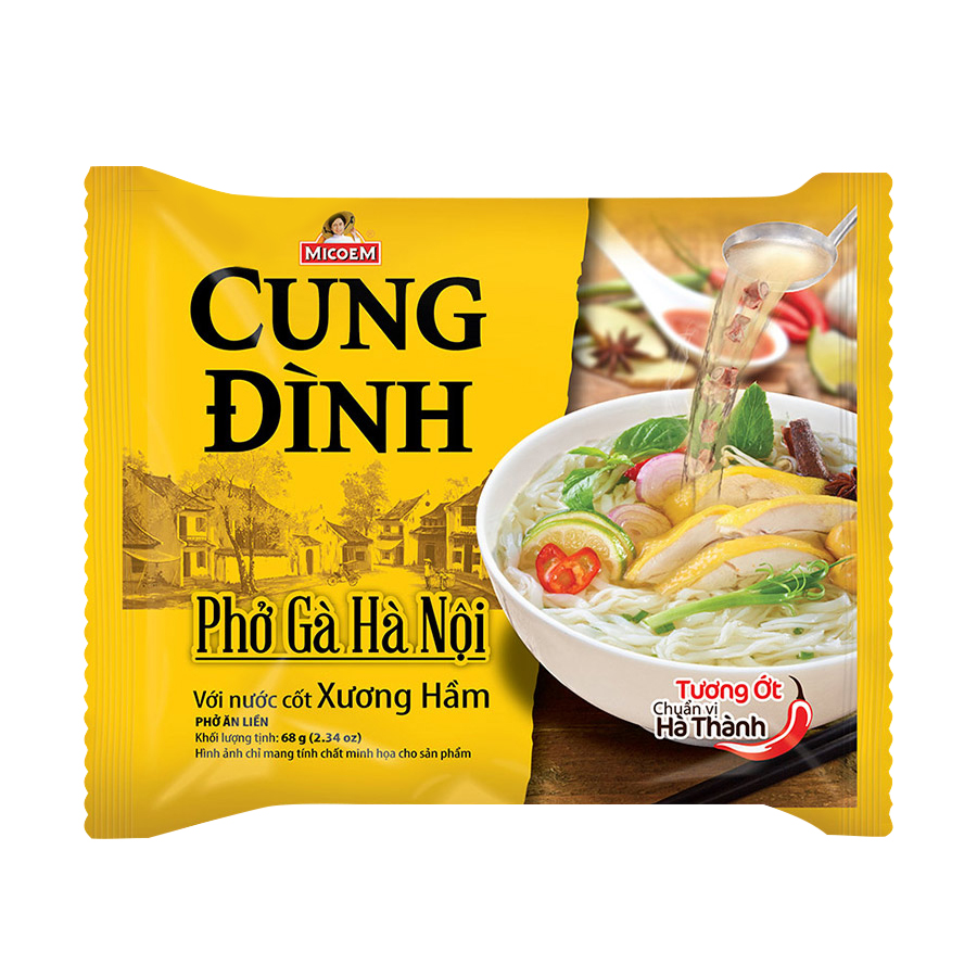 - Thùng 12 Hộp Phở Gà Hà Nội Cung Đình (73g/ Hộp) với nước cốt xương hầm và tương ớt chuẩn vị Hà Thành, chỉ cần vài phút cho khâu chuẩn bị và chế biến