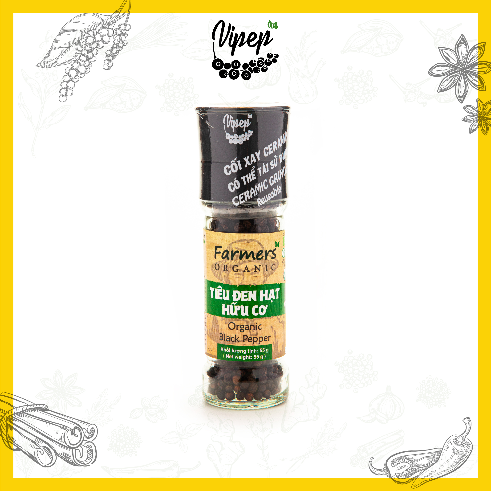 ✨Tiêu Đen Hạt Farmers' Organic Cối Xay Vipep Hũ Thủy Tinh 55g