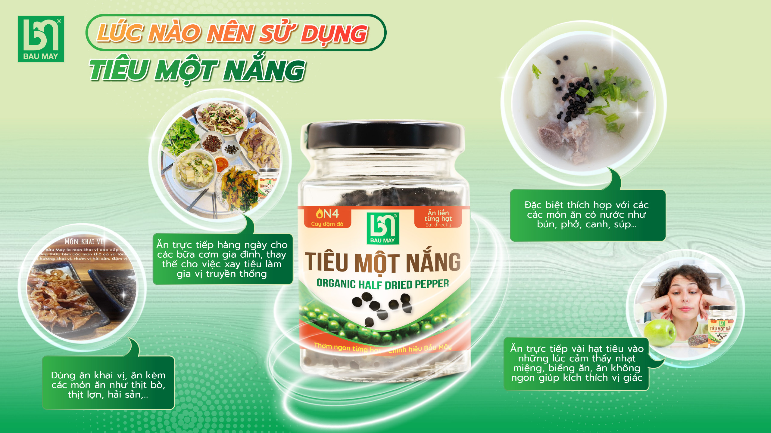 THÔNG TIN VỀ SẢN PHẨM Sản phẩm từ thành phần tự nhiên, không chất bảo quản, không phẩm màu Đã qua kiểm định an toàn vệ sinh thực phẩm Mang đến cho món ăn thêm