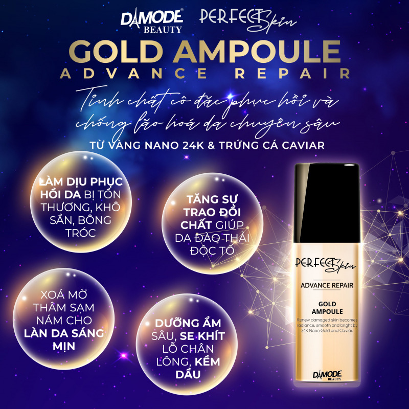 Tên: Tinh chất cô đặc Advance Repair Gold Ampoule Xuất xứ: Hàn Quốc Thương hiệu: Damode Beauty Quy cách: 15ml Gold Ampoule tinh chất phục hồi chống lão hóa Thành phần tinh chất cô đặc phục