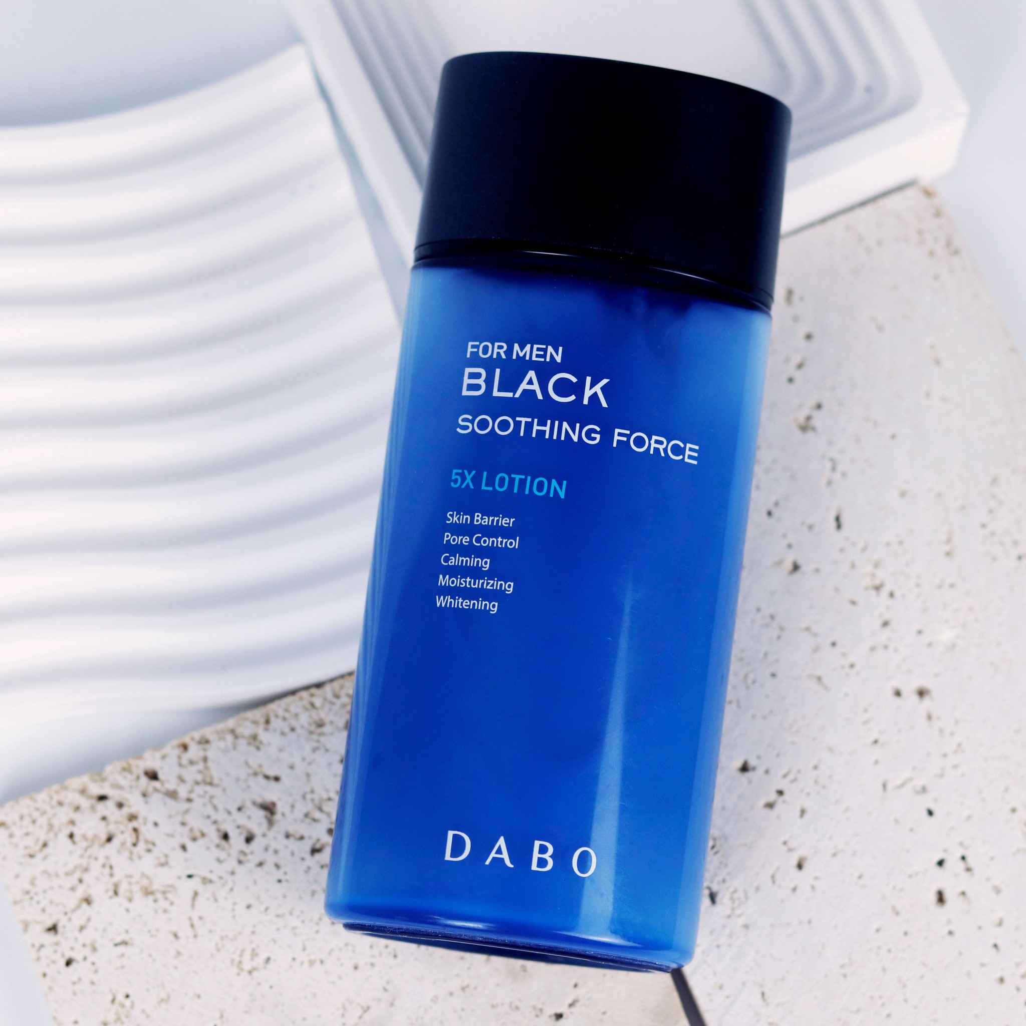 Tinh chất dưỡng da đa năng DABO Soothing Lotion 5X For Men với thành phần chính là Collagen tươi kết hợp cùng Vitamin B3 (Niacinamide) cùng các thành phần thiên nhiên như vừng đen, lúa mạch, lô hội ….đã tạo nên một sản phẩm dưỡng da tuyệt vời dành cho nam giới, giúp làn da nam giới sáng da, cấp ẩm dưỡng ẩm sâu, thu nhỏ lỗ chân lông và làm mềm mịn da.
