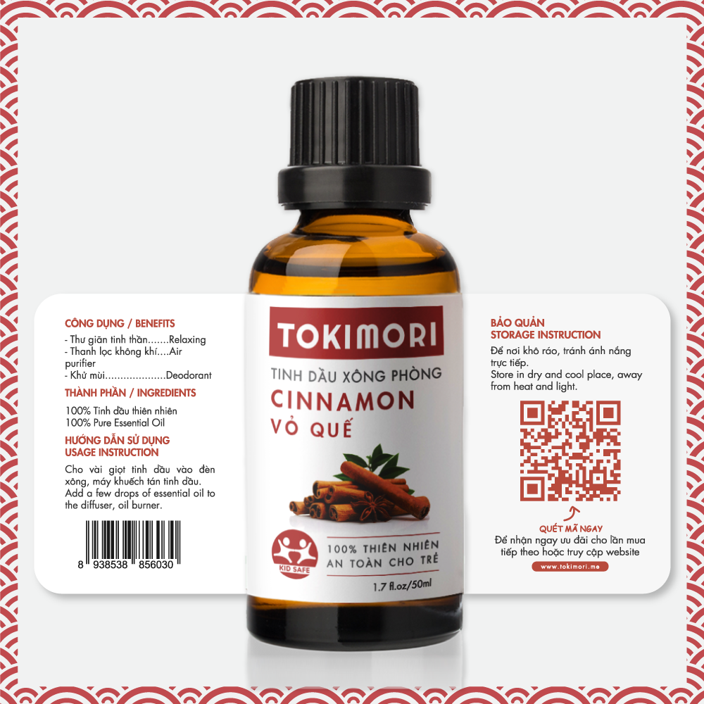 Tinh Dầu Vỏ Quế TOKI MORI Xuất Khẩu Nhật Bản (50ml) Nguyên Chất Thiên Nhiên, Xông Phòng, Khử Mùi, Kháng Khuẩn, Đuổi Muỗi, Ngủ Ngon, Giảm Stress, An Toàn Cho Trẻ.