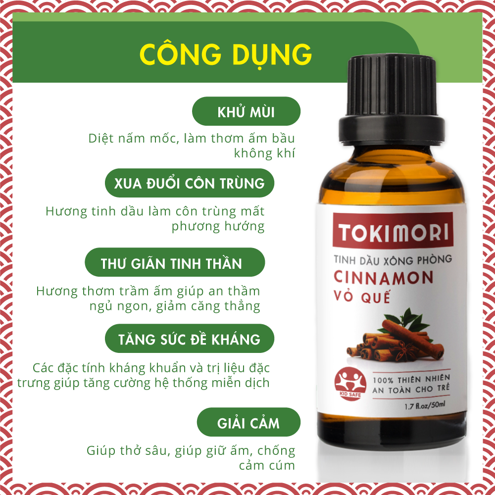 Tinh Dầu Vỏ Quế TOKI MORI Xuất Khẩu Nhật Bản (50ml) Nguyên Chất Thiên Nhiên, Xông Phòng, Khử Mùi, Kháng Khuẩn, Đuổi Muỗi, Ngủ Ngon, Giảm Stress, An Toàn Cho Trẻ. 5 LÝ DO