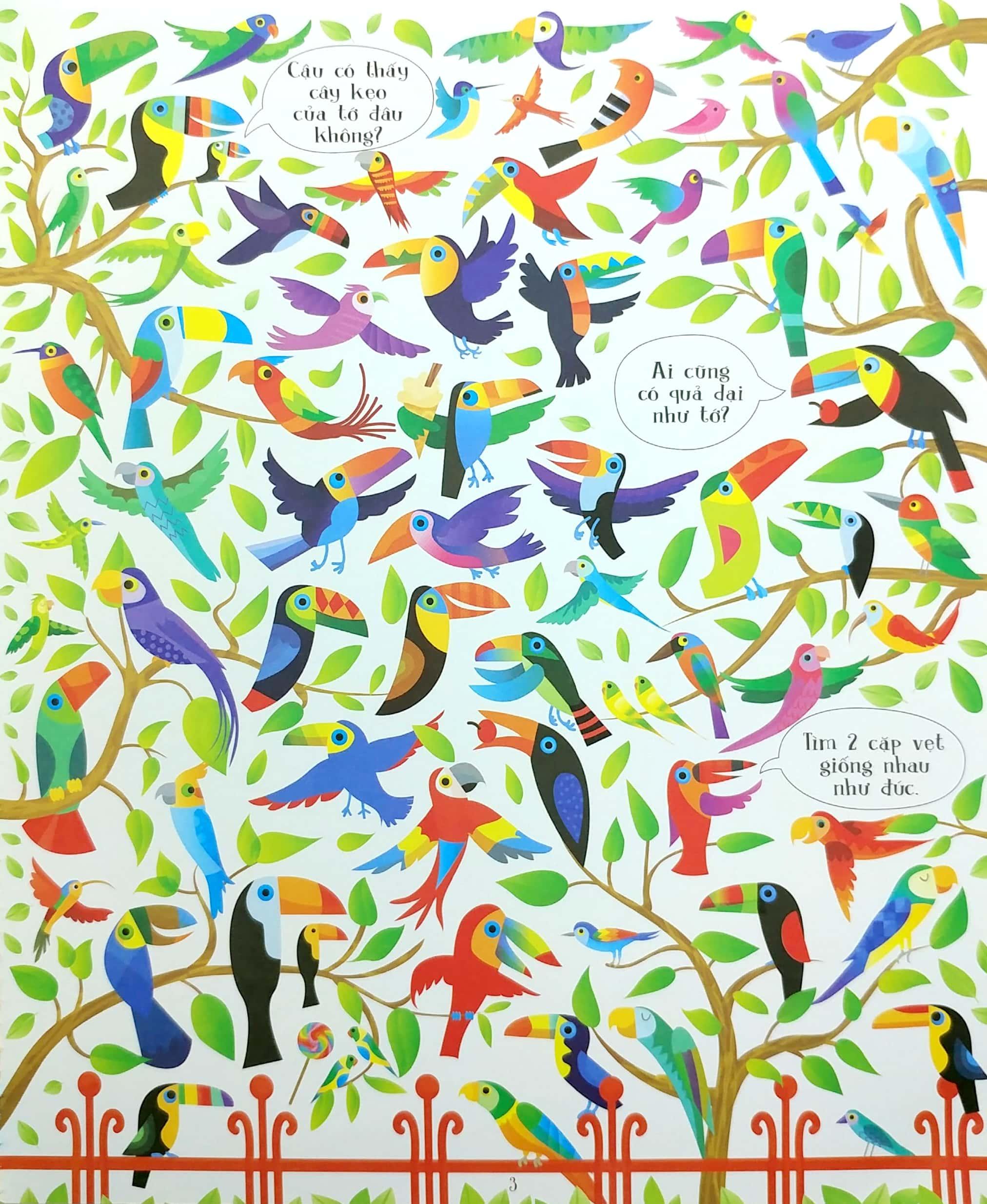 Mỗi trang trong cuốn sách tranh tuyệt đẹp này đầy hình ảnh những động vật cho các bạn nhỏ tha hồ tìm kiếm, ghép hình giống nhau và tập đếm, cùng hàng trăm tình huống thú vị và nhân vật ngộ nghĩnh cho các bạn ấy mày mò .