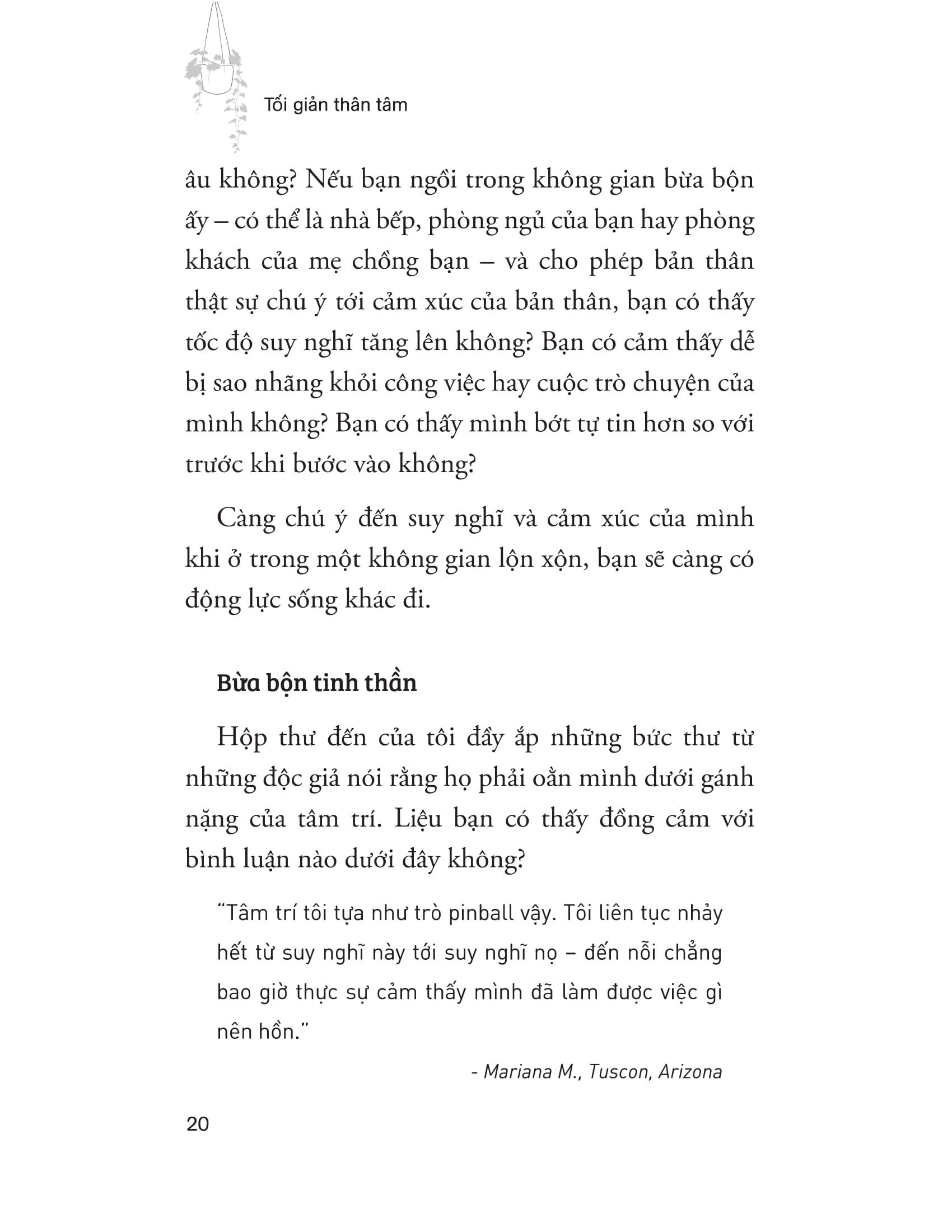 Tối Giản Thân Tâm Nhiều người trong chúng ta đang phải chịu gánh nặng của những thứ ta sở hữu, những cam kết, lịch trình và các suy nghĩ trong tâm trí. Trong trạng thái ấy, ta không thể chậm...