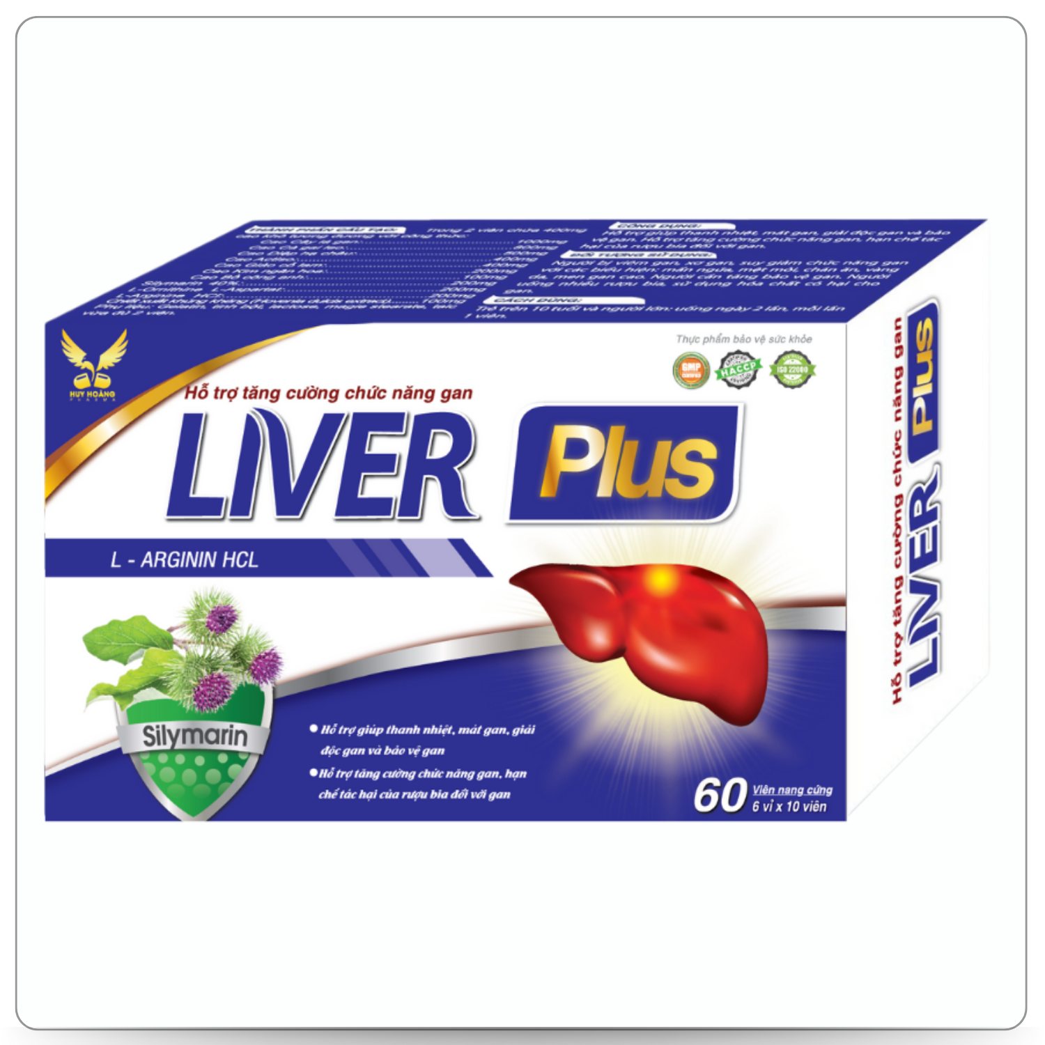 Liver Plus chứa L-Arginine HCl nhập khẩu từ Hàn Quốc, Silymarin, L-Ornithine L-Aspartat cùng với các thảo mộc thiên nhiên giúp hỗ trợ thanh nhiệt, mát gan, giải độc và bảo vệ gan; hỗ trợ tăng cường chức năng gan, hạn chế tác hại của rư:ợu b:ia đối với gan. TRONG SẢN PHẨM LIVER PLUS CÓ CHỨA CÁC THÀNH PHẦN: Trong 2 viên chứa 400mg cao khô tương đương với công thức: Cao Cây lá gan: 1000mg Cao Cà gai leo: 800mg Cao Diệp hạ châu: 500mg Cao Giảo cổ lam: 400mg Cao Actiso: 400mg Cao Kim ngân hoa: 200mg Cao Cây chỉ nụ: 100mg Cao Bồ công anh: 100mg. – Silymarin 40%: 200mg, – L-Ornithine L-Aspartat: 200mg, – L-Arginine HCl: 200mg, – Chiết xuất khúng khéng Hovenia dulcis extract: 100mg – Phụ liệu: Gelatin, tinh bột, lactose, magie stearate, talc vừa đủ 2 viên. SẢN PHẨM LIVER PLUS GIÚP: – Hỗ trợ giúp thanh nhiệt, mát gan, giải độc gan và bảo vệ gan. – Hỗ trợ tăng cường chức năng gan, hạn chế tác hại của rư:ợu b:ia đối với gan. SẢN PHẨM LIVER PLUS SỬ DỤNG CHO: – Người bị viêm gan, xơ gan, suy giảm chức năng gan, với các biểu hiện: mẩn ngứa, mệt mỏi, chán ăn, vàng da, men gan cao. – Người cần tăng bảo vệ gan. Người uống nhiều rư:ợu b:ia, sử dụng hoá chất có hại cho gan. CÁCH SỬ DỤNG SẢN PHẨM LIVER PLUS: – Trẻ trên 10 tuổi và người lớn: uống ngày 2 lần, mỗi lần 1 viên. Chú ý: – Không sử dụng cho người mẫn cảm với bất kỳ thành phần nào của sản phẩm. – Thực phẩm này không phải là th:uốc, không có tác dụng thay thế th:uốc chữa bệnh.