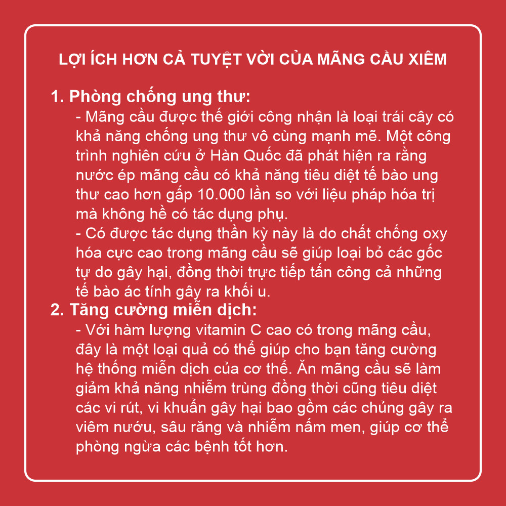 THÀNH PHẦN: 100% thịt trái mãng cầu xiêm.