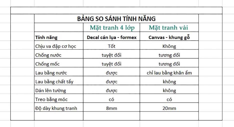 - Mặt tranh có cấu tạo 4 lớp, độ bền được đảm bảo tuyệt đối.