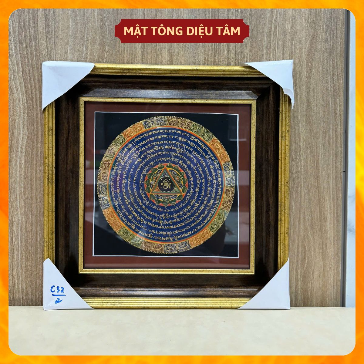✨Tranh Mandala Chú Om Mani Padme Hum kèm khung 32cm Vẽ Tay Thủ Công Nepal Tranh chú lục tự chân ngôn Mật tông Diệu Tâm