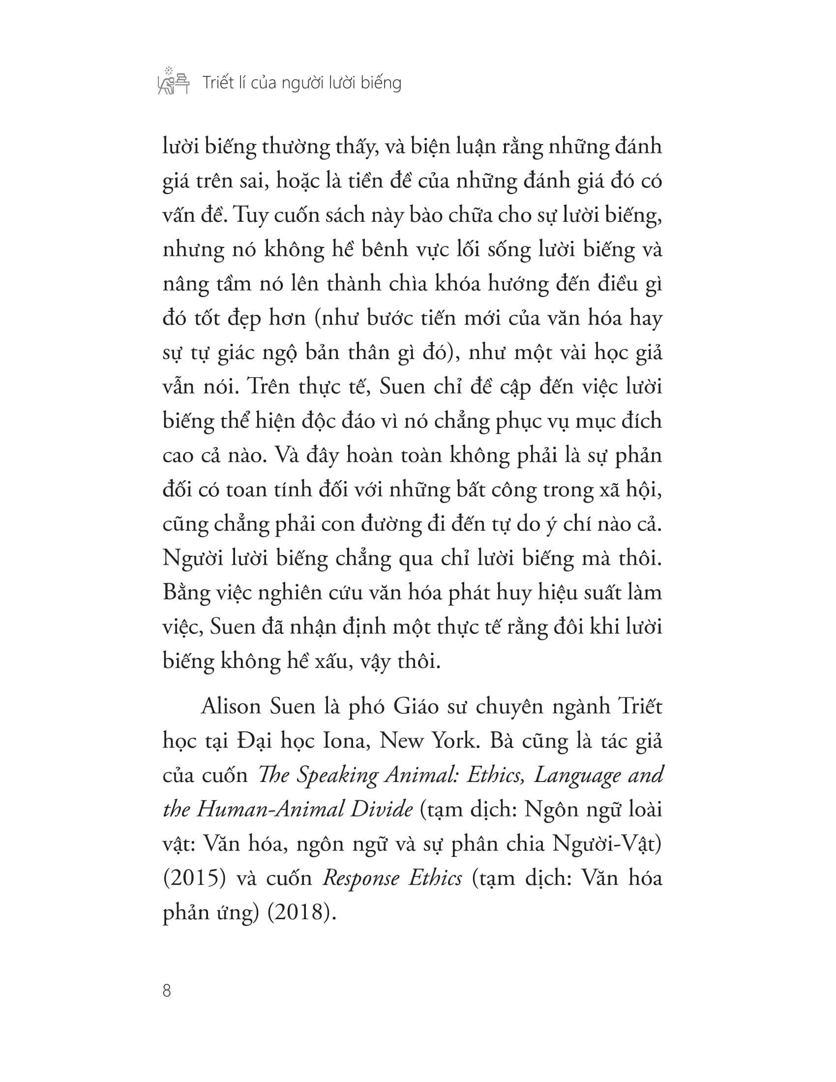 Nếu chúng ta là người tử tế, chúng ta sẽ quan tâm đến người khác, kể cả những người có xu hướng tự làm tổn thương m.ình. Tất cả chúng ta đều từng có bạn bè hoặc người thân có tiềm năng phát triển nhưng phung phí hoặc thậm chí là hủy hoại cuộc sống của họ vì những thứ như lạm dụng túy, quyết định chi tiêu thiếu khôn ngoan hoặc thói quen ăn kiêng không lành mạnh. Sự quan tâm mà chúng ta dành cho người khác thường thúc đẩy chúng ta tán thành luật pháp hoặc các biện pháp can thiệp riêng tư nhằm giữ cho mọi người không làm hại bản thân ngay cả khi đó là điều họ muốn làm. Tuy nhiên, những biện pháp can thiệp mang tính “gia trưởng” như vậy không hề tốt và chúng có xu hướng khiến chúng ta quên đi rằng chúng ta nên để những người trưởng thành tự quyết định. Trong cuốn sách nhỏ này, William Glod đã dùng lý lẽ để chứng minh cho luận điểm rằng việc để cho những người trưởng thành đưa ra những quyết định dù là tồi tệ không xấu. Kể cả khi những lựa chọn đó có nguy cơ gây ra nhiều tác hại thì cũng không có vấn đề gì. Hầu hết những người bảo vệ chủ nghĩa gia trưởng cũng đều đồng tình rằng một số lựa chọn tồi không nguy hại đến mức phải nhờ đến luật pháp ngăn chặn chúng. Tuy nhiên, Glod còn đi xa hơn khi lập luận rằng một số người có thể muốn - và xứng đáng - được tự do đưa ra những lựa chọn thực sự tồi tệ bởi vì sự tự do đó là cách duy nhất để họ có thể hành động có trách nhiệm. Ông cũng lập luận rằng một số lựa chọn “tồi tệ” thậm chí không tệ như chúng ta nghĩ, ngay cả khi chúng ta không thể biết được mong muốn thực sự của một người. THÔNG TIN TÁC GIẢ William Glod là Cán bộ Phụ trách kế hoạch cấp cao của Viện Nghiên cứu Nhân đạo, một tổ chức giáo dục phi lợi nhuận liên kết với Đại học George Mason tại Arlington, bang Virginia. Tiến sĩ Glod quan tâm đến việc nghiên cứu đạo đức học nhân đức và triết học chính trị, đặc biệt là chủ nghĩa tự do cổ điển.