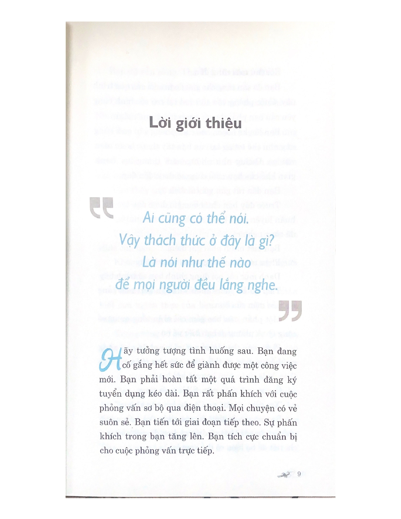 - Giới thiệu sách ĐỨNG LÊN VÀ NÓI SAO CHO MỌI NGƯỜI THỰC SỰ LẮNG NGHE Trong cuốn sách này, diễn giả đẳng cấp quốc tế Paul McGee giúp bạn tránh được những sai lầm phổ biến mà mọi người thường hay mắc phải khi thuyết phục người khác, đồng thời chỉ cho bạn cách giao tiếp sao cho tiếng nói của mình được người khác lắng nghe. Nói hay thổi bay thế giới sẽ hướng dẫn bạn: Vượt qua nỗi lo lắng và thuyết trình như một diễn giả chuyên nghiệp đích thực Thấu hiểu ngôn ngữ cơ thể của bản thân Trình bày rõ ràng và gây được tác động mạnh mẽ Khiến cho khán thính giả phải ngồi thẳng lưng và im lặng lắng nghe khi bạn bước lên sân khấu Bạn không cần đến loa mới có thể khiến người khác lắng nghe. Cầm lấy cuốn bí kíp này để biến thành một diễn giả xuất chúng và gây ấn tượng với khán thính giả!