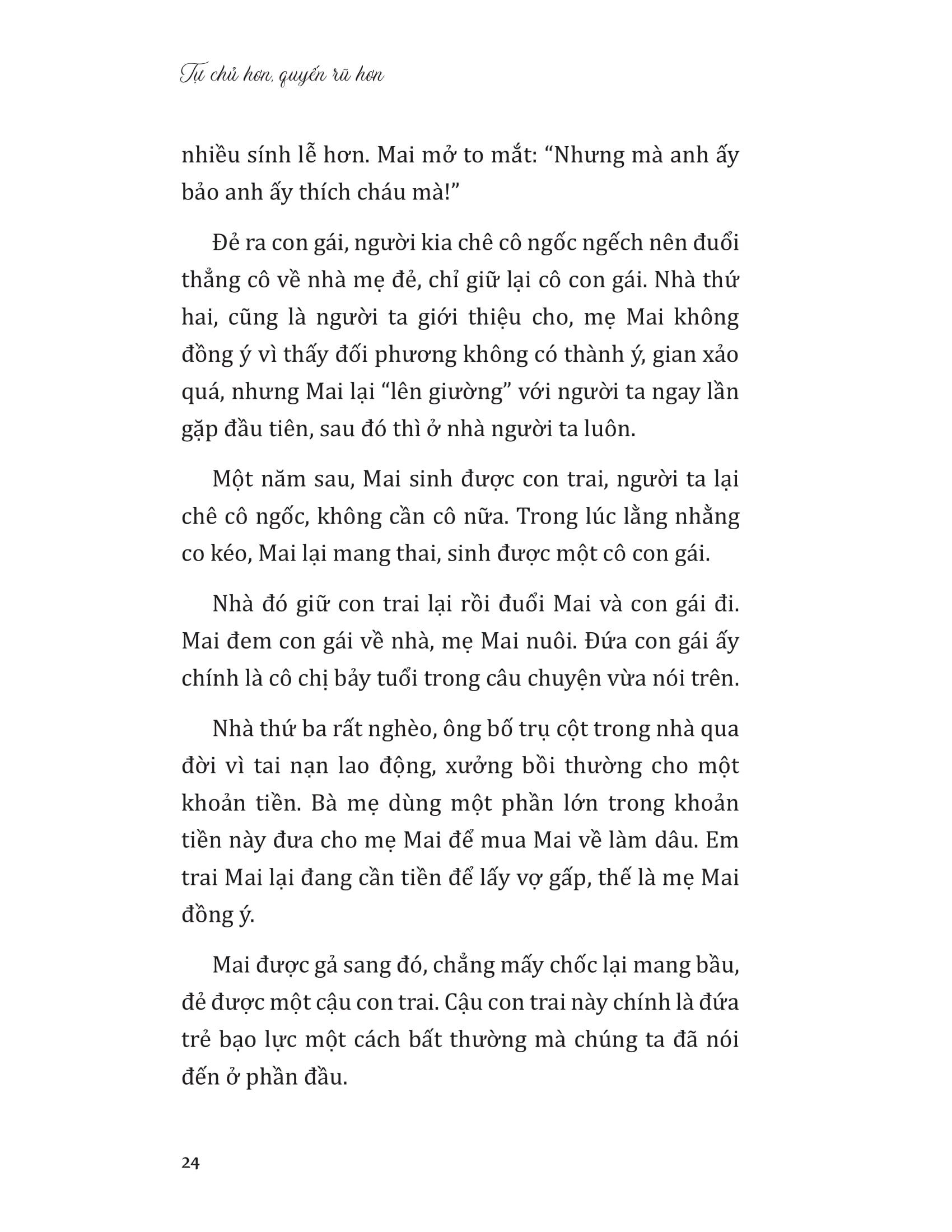 Chỉ khi được nhận thức, được cởi bỏ thì phụ nữ mới có thể đón nhận bình đẳng và tự do thực sự. Trực tiếp đối diện với thế giới mới có thể đối diện với bản thân. Đây cũng là một bước quan trọng trong quá trình phát triển bản thân.