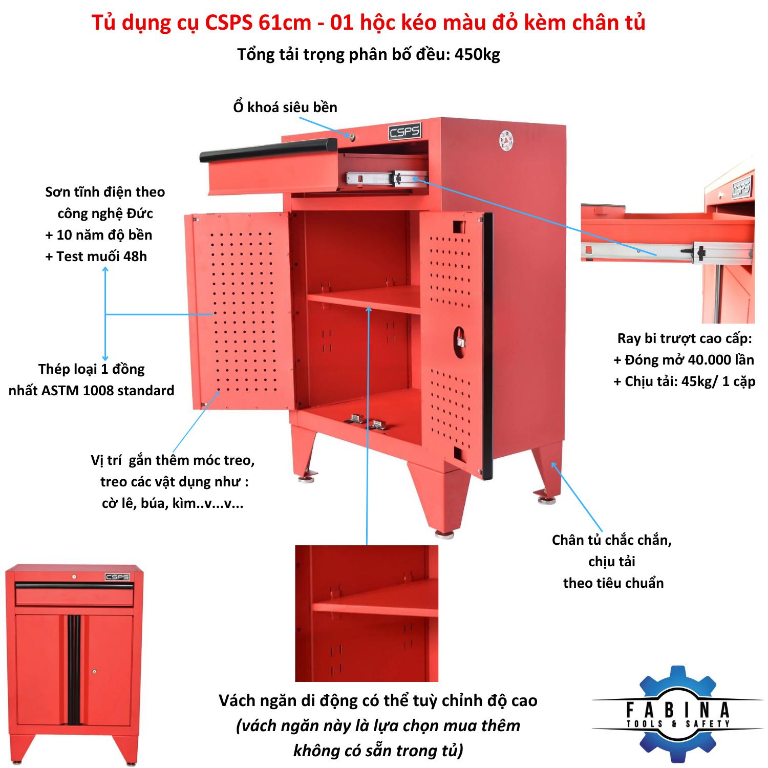 ✨Tủ dụng cụ CSPS 61cm - 01 hộc kéo màu đỏ có chân tủ