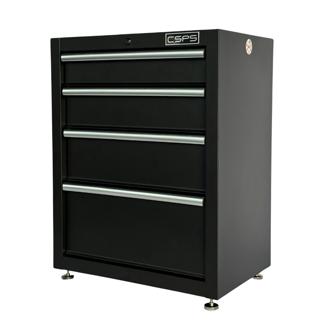 Tủ dụng cụ CSPS 84cm - 04 hộc kéo Kích thước sử dụng: 84cm Rộng x 51cm Sâu x 101cm Cao Khối lượng sử dụng: 52.9 kg Tổng chịu tải: 320 kg Ngăn kéo: 04 ngăn,