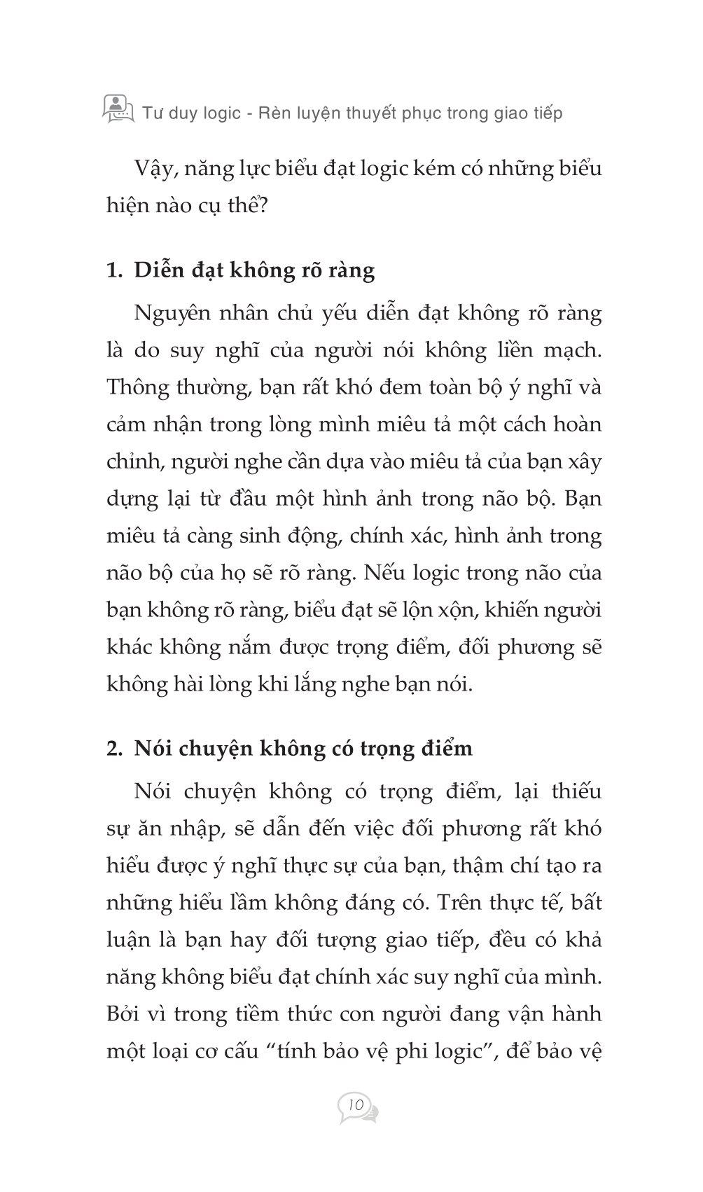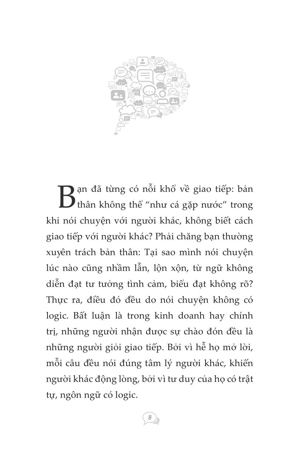 Khi giao tiếp và truyền đạt suy nghĩ của bạn với người khác, nếu không có tính logic, lời nói của bạn sẽ là chướng ngại vật cản trở giao tiếp giữa hai bên. Những mối quan hệ giữa các cá nhân phức tạp của xã hội hiện đại, cuộc sống và công việc nhịp độ nhanh đòi hỏi chúng ta phải có một "lời nói logic" thông minh hơn, sắc sảo hơn.