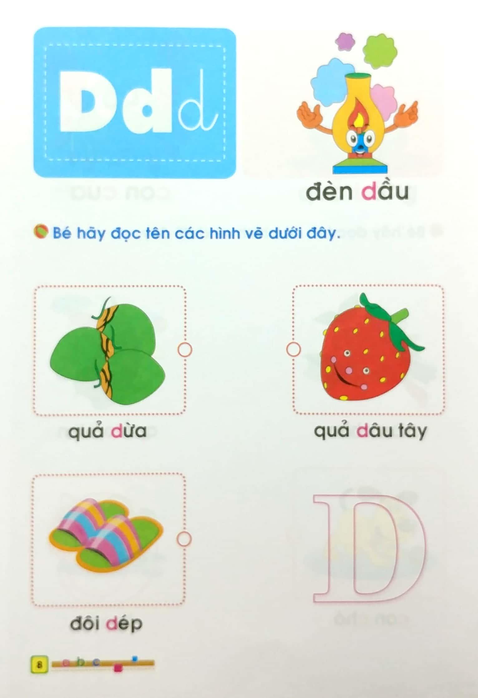 Mỗi tập nhấn mạnh vào một kỹ năng cơ bản: tô màu, tô chữ, tập phát âm, nối chữ và hình, tô nét cơ bả Ngoài ra, sách còn kèm theo hình vẽ minh họa màu sinh động, giúp các em hứng thú hơn trong học tập.