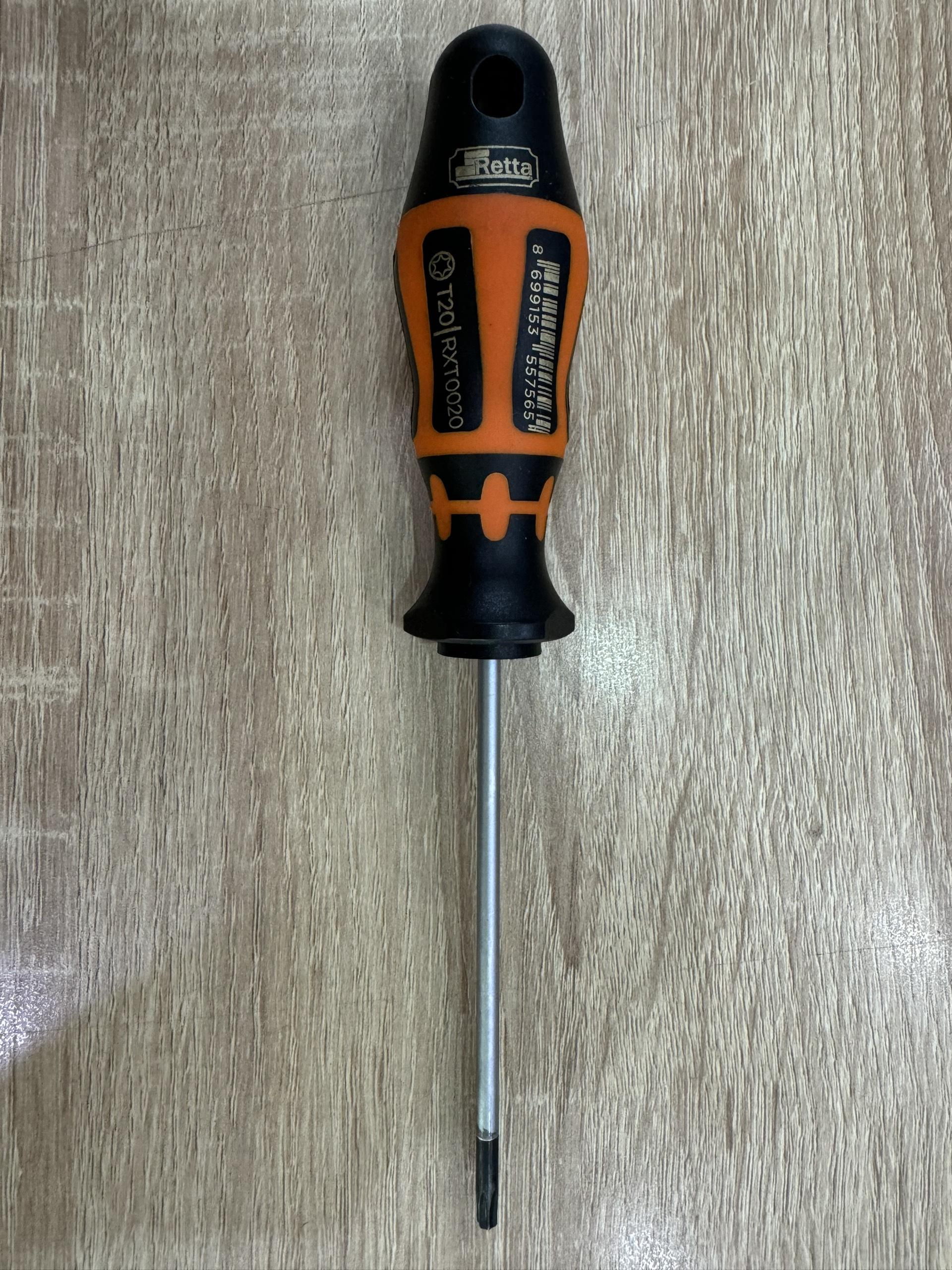 Tua vít đầu sao torx T20 Retta RXT0020 Model:RXT0020 Chiều dài:100mm Là dụng cụ cầm tay, chuyên dùng để vặn, siết đóng ốc vít bằng tay. Sản phẩm được gia công rất tỉ mỉ, đã qua