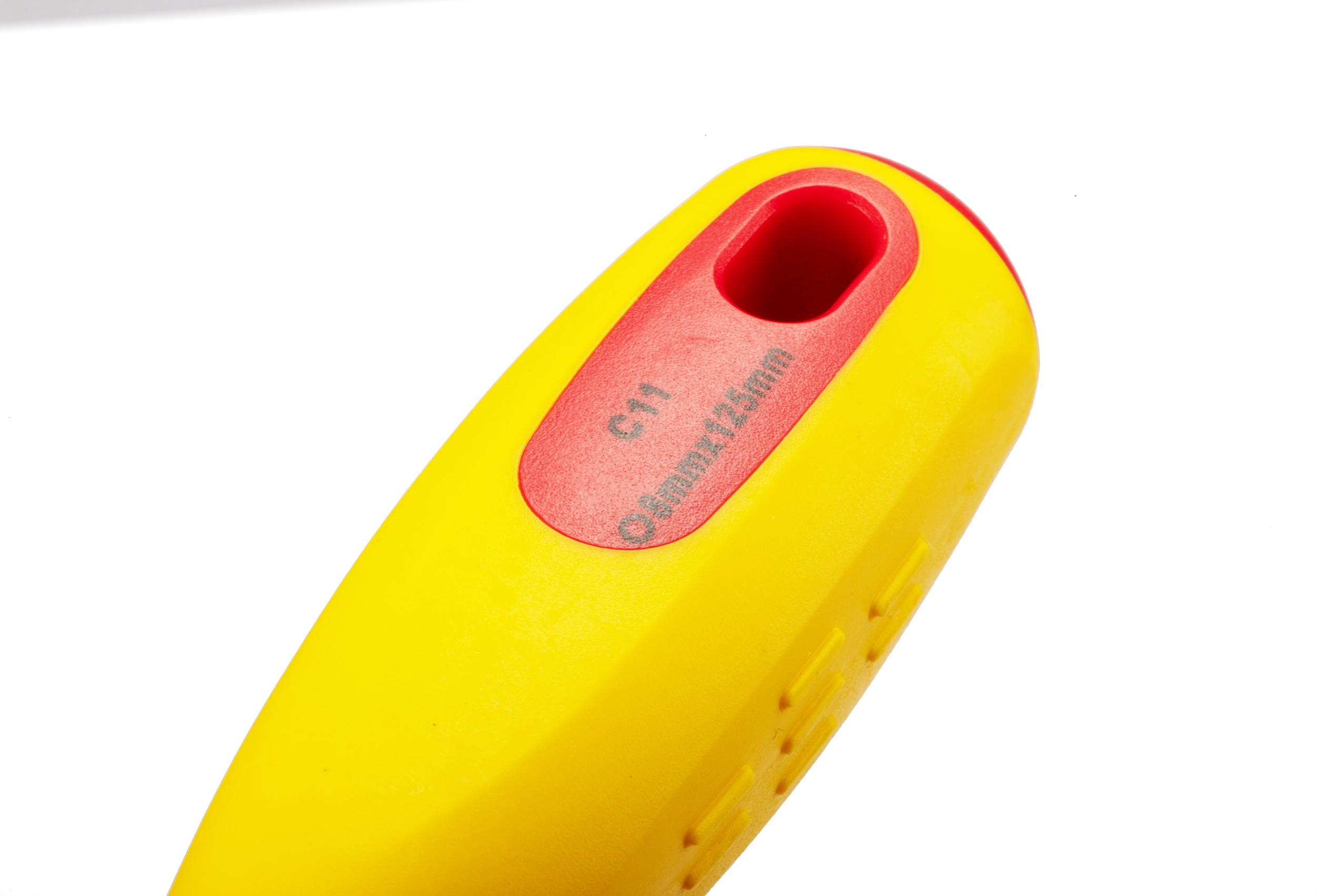 English name:Screwdriver SoftFinish electric Tiêu chuẩnĐược thử nghiệm theo IEC 60900.Ứng dụng Đối với công việc trong khu vực của các bộ phận sống lên đến 1.000 V AC. Size: 2,5 mm Chiều dài: 179