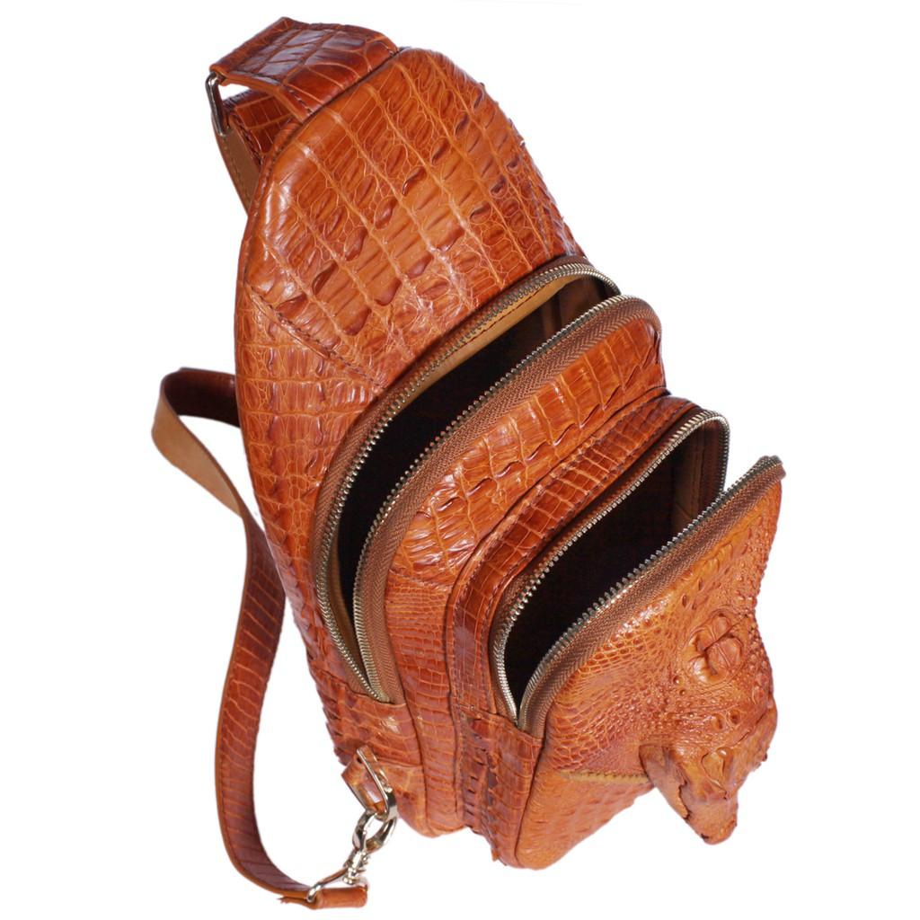 • Tên sản phẩm: Túi đeo trước nam da cá sấu Huy Hoàng con cá sấu màu vàng bò