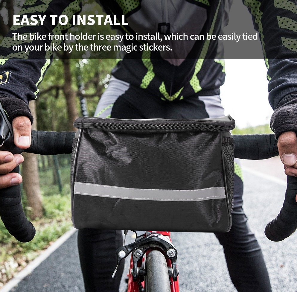 - Giá đỡ phía trước xe đạp dễ dàng lắp đặt, có thể dễ dàng buộc vào xe đạp của bạn bằng ba miếng dán ma thuật.