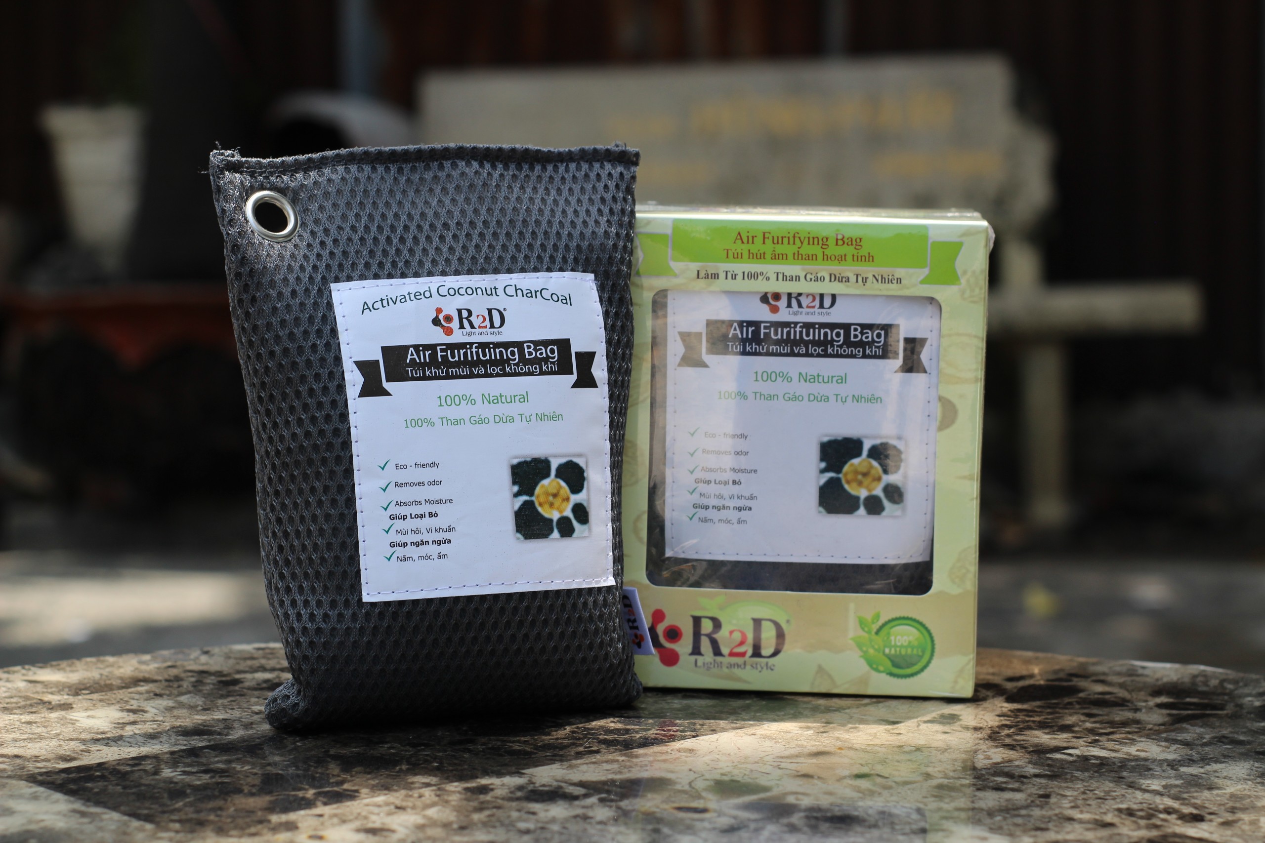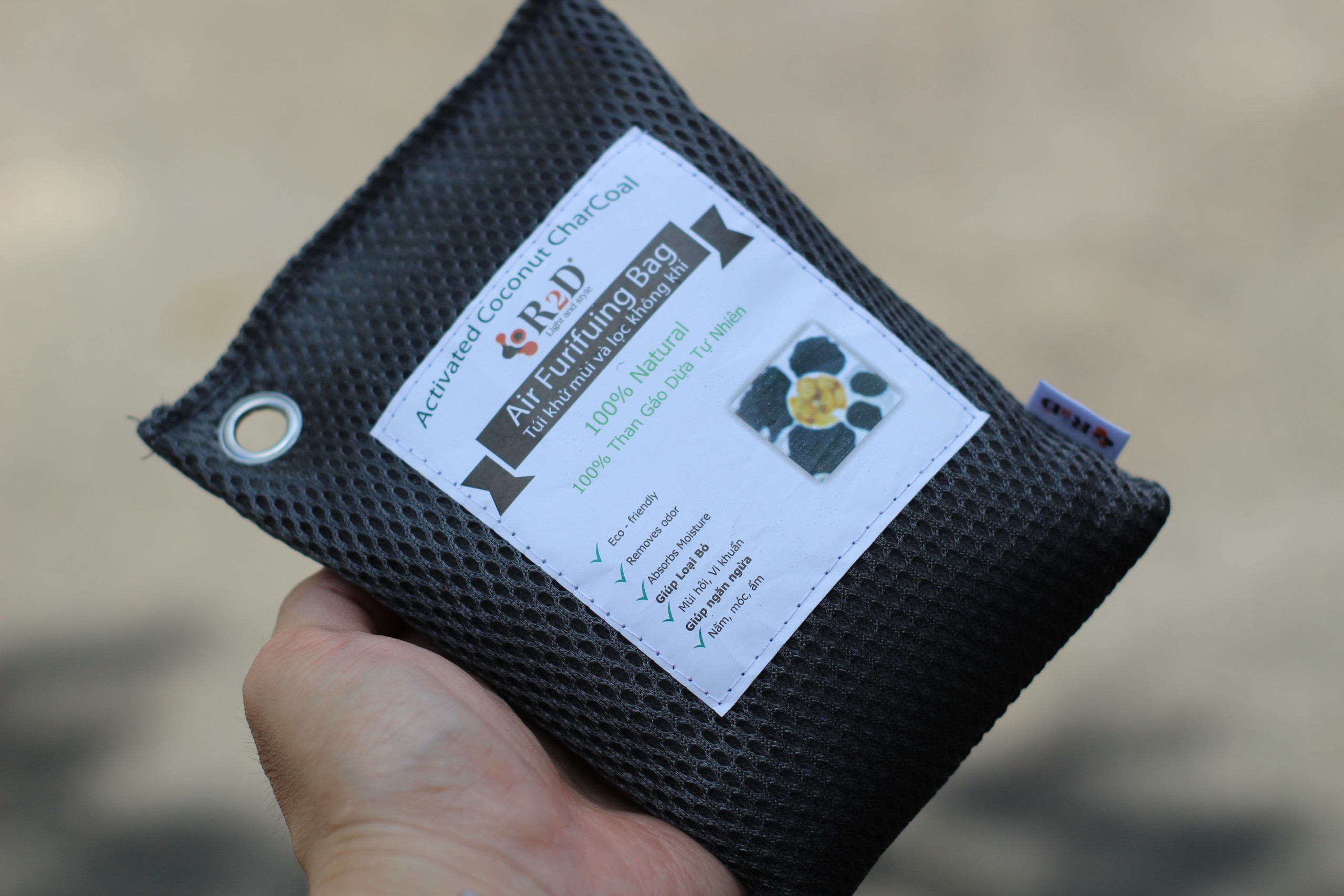 ✨Túi hút ẩm than hoạt tính gáo dừa khử mùi và lọc không khí cho xe hơi chính hãng R2D (hộp 2 túi Lớn)