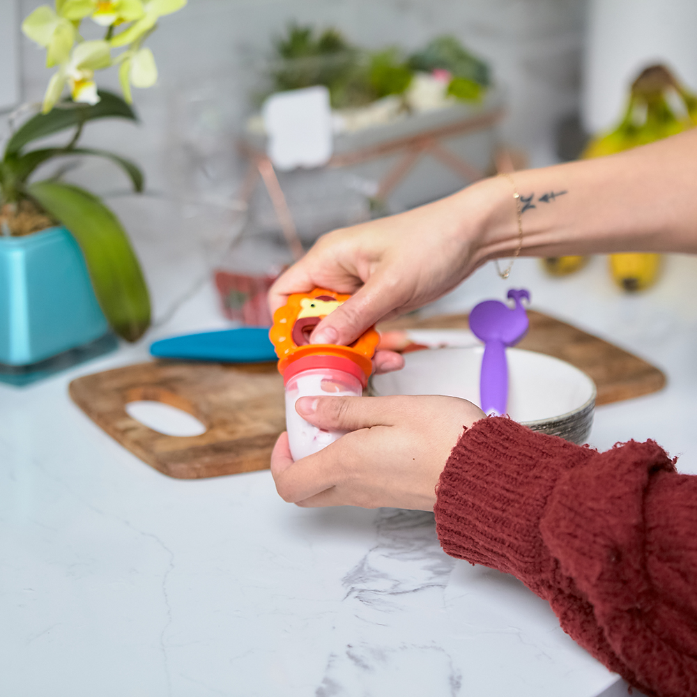 • Thiết kế thân thiện với bé, giúp bé hứng thú với bữa ăn Túi nhai ăn dặm chống hóc silicon kèm gặm nướu và nắp làm kem cho bé Marcus & Marcus được thiết kế hiện đại, tiện lợi, đặc biệt dễ dàng sử dụng, khuyến khích bé tập ăn và tham gia tích cực vào bữa ăn, đồng thời rèn luyện kỹ năng cầm nắm của bé. Hình dáng và họa tiết theo chủ đề những con vật tinh nghịch, ngộ nghĩnh như sư tử Marcus, heo con Pokey, voi con Ollie với màu sắc đa dạng, sinh động làm cho bé thích thú hơn với mỗi bữa ăn. Bé sẽ được khám phá chơi đùa với đồ ăn thỏa thích, kích thích sự thèm ăn và giúp bé ăn ngon miệng hơn. Đôi nét về thương hiệu Marcus & Marcus VỀ MARCUS & MARCUS Marcus & Marcus là thương hiệu đồ dùng silicon thông minh và tiện lợi dùng cho ba mẹ, trẻ sơ sinh và trẻ nhỏ. Khởi nguồn tại Vancouver – Canada, Marcus & Marcus được truyền cảm hứng bởi phong cách hiện đại và nét sang trọng vùng Bờ Tây. Bên cạnh đó, Marcus & Marcus cũng hòa nhập theo xu hướng hiện đại của văn hóa Bắc Mỹ để tạo nên những sản phẩm đẹp mắt có màu sắc tươi sáng. THIẾT KẾ ĐỘC ĐÁO Sản phẩm Marcus & Marcus được thiết kế đơn giản nhưng hiệu quả. Lấy nguồn cảm hứng từ các ba mẹ hiện đại, Marcus & Marcus tạo ra các sản phẩm dễ sử dụng, tính năng cao nhưng đồng thời rất bắt mắt, biến công cuộc chăm sóc con cái của ba mẹ trở nên đơn giản và thú vị qua lăng kính của đại gia đình Marcus & Marcus, vừa dễ thương, ngộ nghĩnh vừa đầy màu sắc tươi mới. AN TOÀN Marcus & Marcus đáp ứng tiêu chuẩn cao về thiết kế, vượt qua yêu cầu an toàn sản phẩm cao nhất. Các sản phẩm bắt mắt, an toàn, sáng tạo và có tính bền vững, thông minh giúp đơn giản hóa cuộc sống bận rộn hàng ngày của bố mẹ trong việc chăm sóc và nuôi dạy con. THÀNH TỰU Với tinh thần không ngừng cải tiến và sáng tạo, Marcus & Marcus liên tục dành được các giải thưởng uy tín từ các tổ chức quốc tế và các chuyên gia trong lĩnh vực đồ dùng cho mẹ và bé từ Canada, Mỹ, Ireland đến Nam Phi, Hong Kong. Các sản phẩm đồ dùng ăn dặm, vệ sinh răng miệng hay đồ chơi tắm silicon, … được bình chọn Top 1 bởi các tạp chí chuyên đề và người tiêu dùng trên khắp thế giới. Một số giải thưởng tiêu biểu: Baby Maternity Award 2021, 2020, 2019 (USA) SavvyMom Award 2018 (Canada) Tillywig Awards 2017 (USA) ABC New Product Show Case Awards 2017 (USA) Mama Magic Award 2017 (Nam Phi) National Parenting Center Award 2017 (Ireland) Hong Kong Smart Design Awards 2019, 2018 Creative Child Awards 2020, 2019 (USA) CÁC DÒNG SẢN PHẨM MARCUS & MARCUS MEAL TIME: bát, thìa, đĩa, đũa tập ăn, ly uống nước, yếm ăn, ống hút silicon, khay trữ đông đồ ăn dặm cho bé PLAY TIME: ty ngậm, gặm nướu, thú nhồi bông, thảm chơi cho bé HAPPITEETH TIME: rơ lưỡi xỏ ngón, bàn chải răng kiêm gặm nướu, bàn chải đánh răng kiêm mát xa nướu, bàn chải tâp đánh răng silicon, bàn chải đánh răng chạy pin.  BATH TIME: đồ chơi tắm silicon có báo nhiệt, đồ chơi tắm phun nước. TRAVEL TIME: balo giữ nhiệt, yếm ăn du lịch, bình uống nước có quai xách, bát silicon xếp gọn GIFT TIME: bộ quà tặng đồ dùng ăn dặm Baby, bộ quà tặng đồ dùng ăn dặm Toddler, …