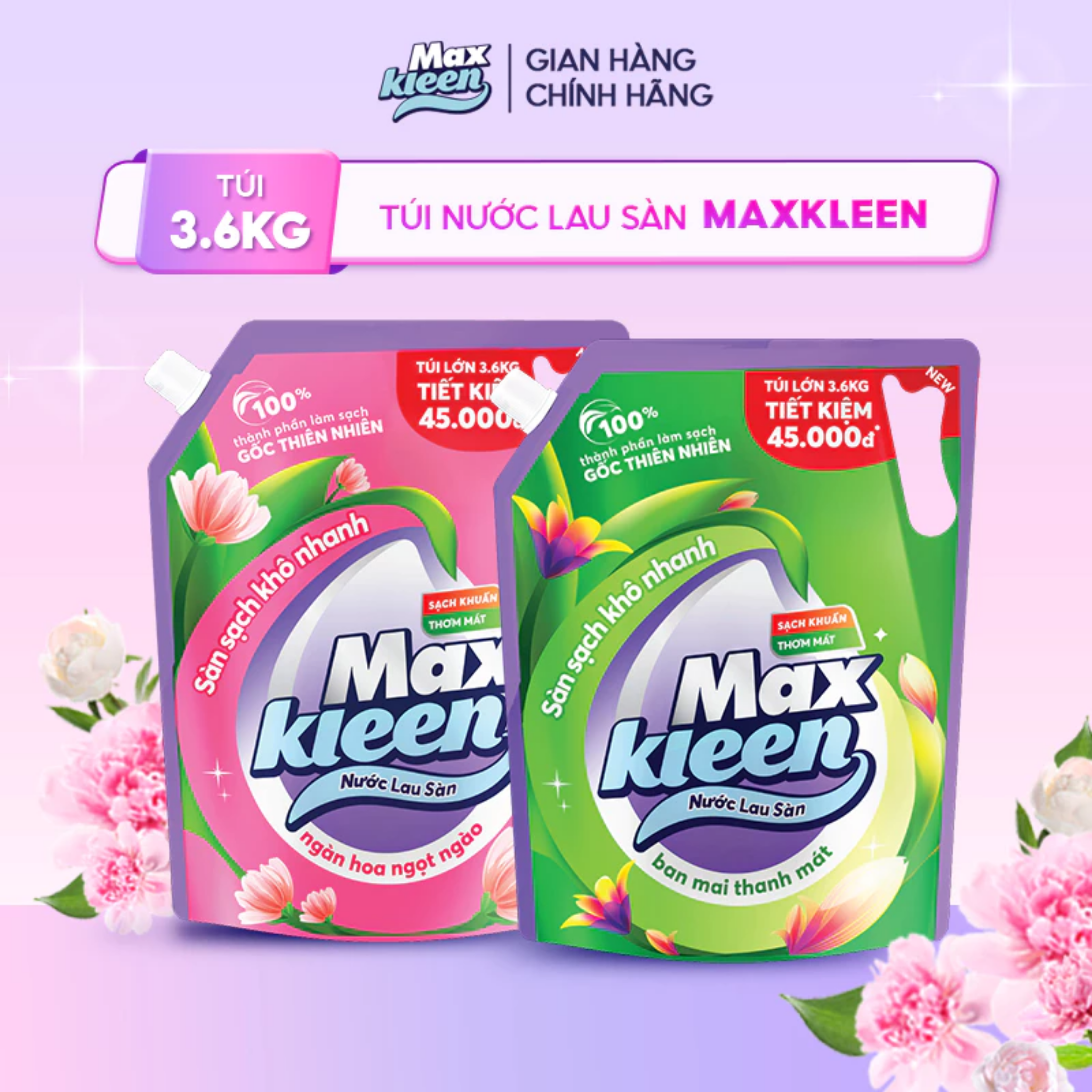 Túi nước lau sàn MaxKleen Ngàn hoa ngọt ngào 3.6kg với công thức tiên tiến giúp làm sạch vết bẩn, loại bỏ vi khuẩn trên sàn nhà một cách nhanh chóng và hiệu quả, giúp