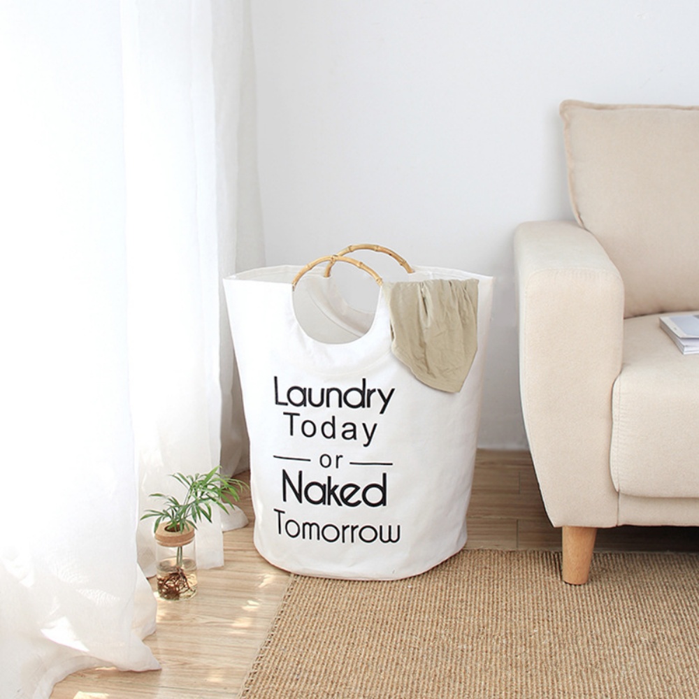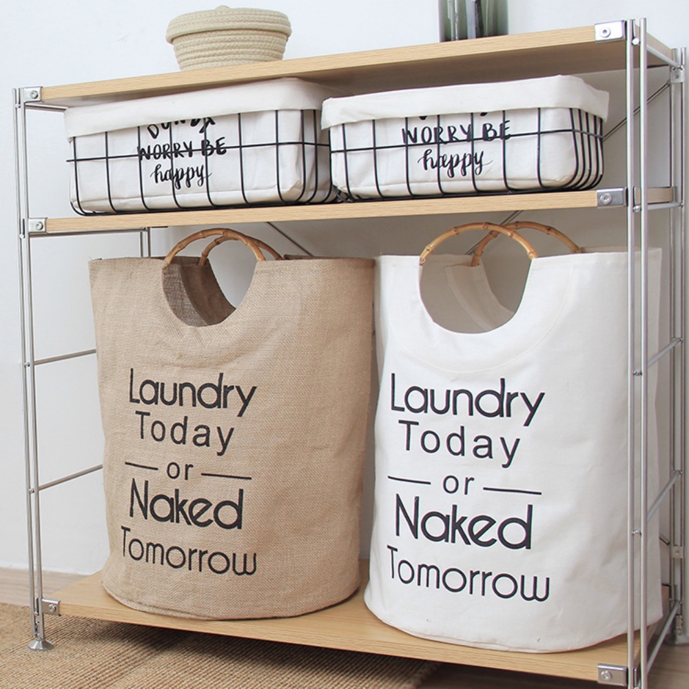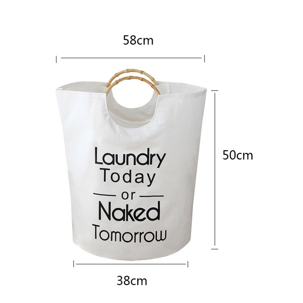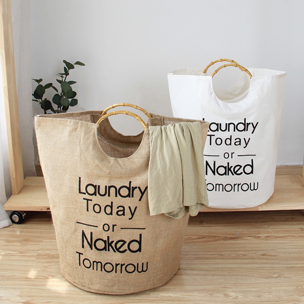 Túi sọt vải bố dầy, túi cỡ lớn quai gỗ sang trọng đựng đồ giặt, quần áo bẩn, giỏ đựng chơi, vật dụng đa năng