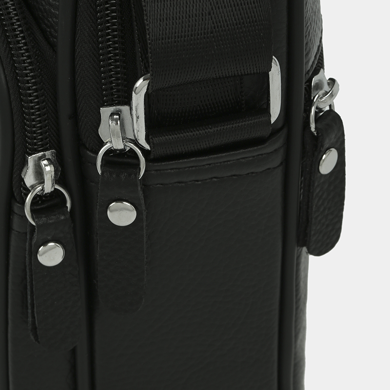 Chiếc Túi xách nam công sở da thật, túi đeo chéo nam du lịch đựng máy tính bảng 7.9 inch phối khoen với thiết kế dáng đứng cùng chi tiết phối khoen mặt trước trên nền