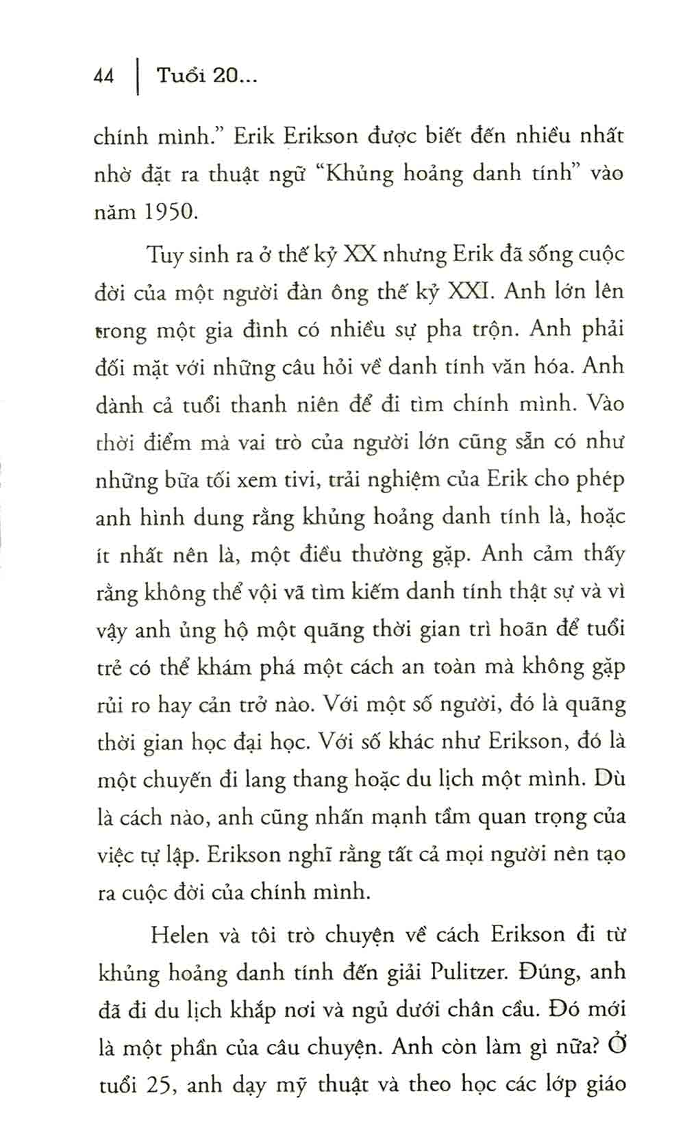Tuổi 20 – Những năm tháng quyết định cuộc đời bạn sẽ giải đáp cho ta những khúc mắc về sự thay đổi trong ta ở độ tuổi 20, giúp ta biết được mình nên làm thế nào để có thể vững vàng bước qua tuổi 20, để có được những năm tháng vô cùng ý nghĩa. Hãy bắt đầu bằng cách tìm hiểu vì sao câu trả lời hay nhất cho câu hỏi "Tôi là ai" không phải là một cuộc khủng hoảng danh tính kéo dài mà là một vài mảnh ghép của cái gọi là vốn sống.