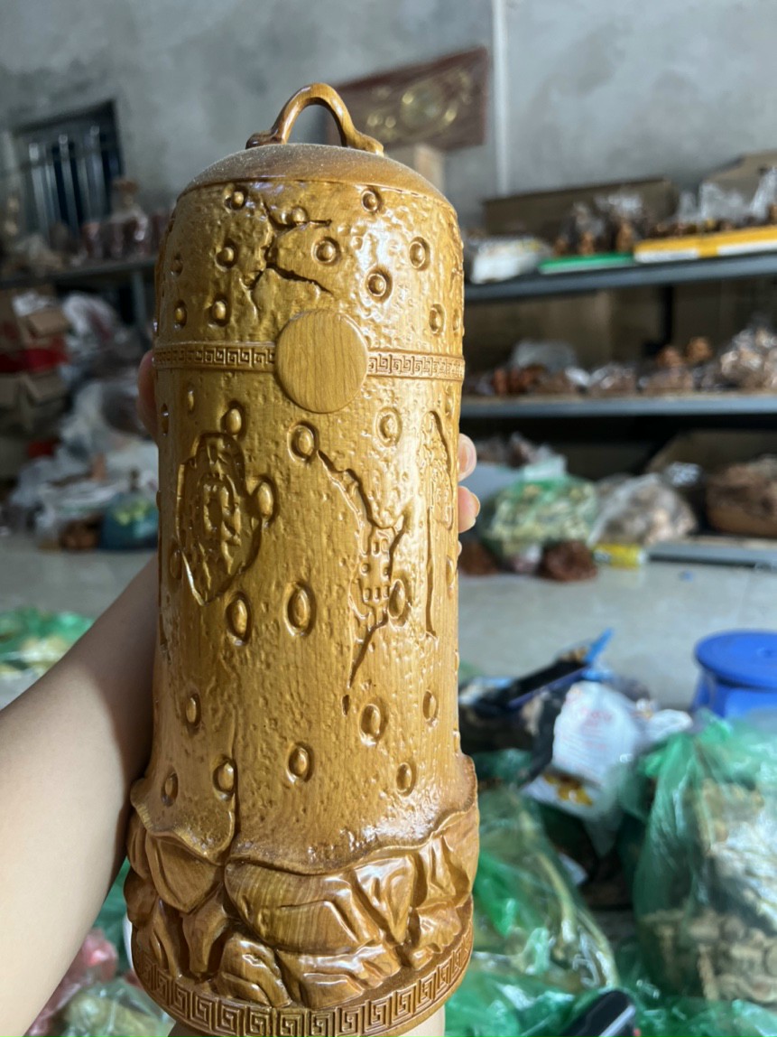 Mua tại TiktokTượng đạt ma sư tổ ngồi thiền trong chuông được làm bằng chất liệu gỗ bách xanh thơm phức liền khối tự nhiên 100% Kt cao 40×12×12cm _ Tượng đạt ma sư tổ được điêu khắc ,trạm trổ vô cùng tỉ mỉ ,tinh sảo kỳ công .Đi hầu hết tất cả cả mọi chi tiết góc ngách của tượng đều được gọt tỉa chỉnh sửa cực kỳ sắc nét ,hoàn toàn bằng tay thủ công .Tượng đạt ma sư tổ được làm và hoàn thiện ,do bàn tay khối óc tài hoa ,từ những người thợ dầy rặn kinh nghiệm ,cũng như tay nghề cao trong làng nghề truyền thống .Chính vì thế tượng đạt ma sư tổ ngồi thiền trong chuông đã đáp ứng đầy đủ mọi tiêu trí cần thiết như ( Đẹp bền rẻ ) Thẩm mỹ nghệ thuật với chất lượng tuyệt vời