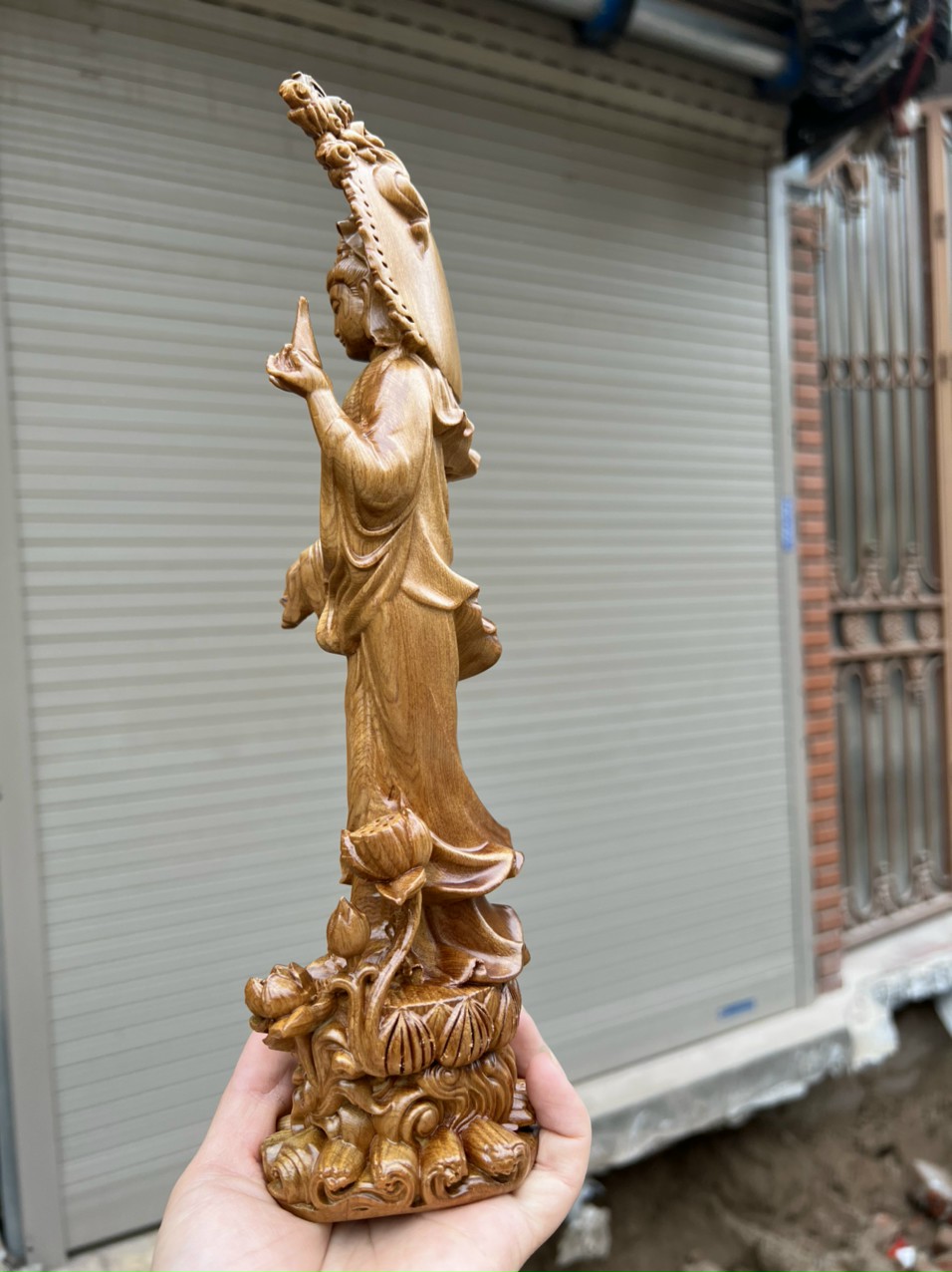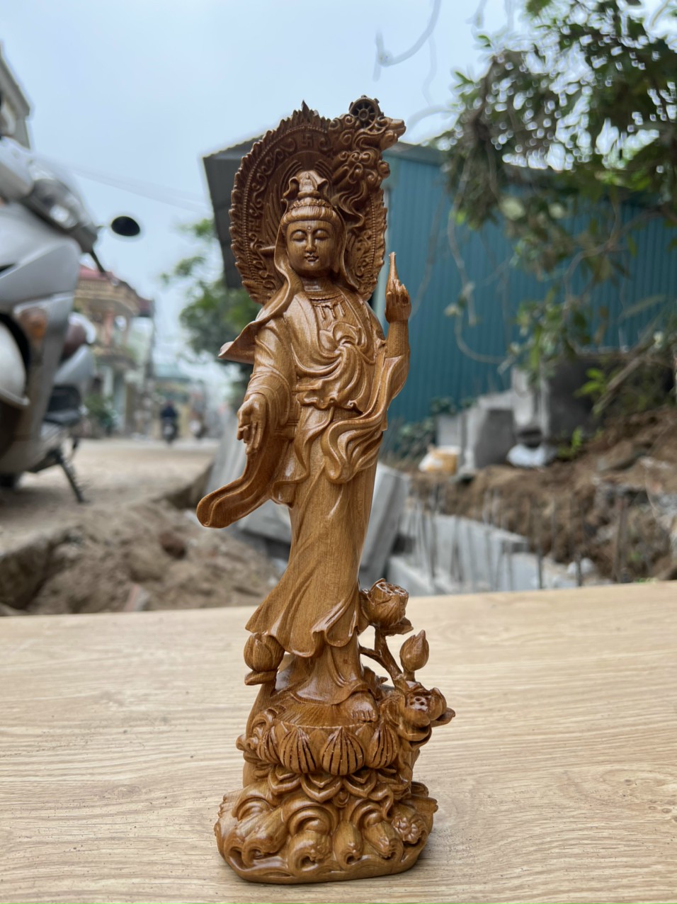 Tượng Phật Bà được chạm khắc vô cùng tỉ mỉ , nổi bật thần thái “ từ bi hỉ xả “ của Phật Bà Quan Âm luôn che chở, cứu giúp chúng sinh. Tượng có