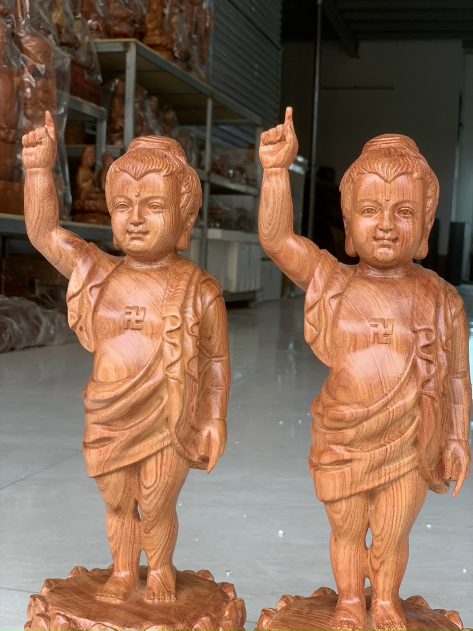 Tượng phật đản sanh được làm bằng chất liệu gỗ hương đá tự nhiên 100% Kích thước cao 40×15cm _ Tượng phật đản sanh được làm và hoàn thiện do bàn tay khối óc tài hoa .Từ những người thợ dầy rặn kinh nghiệm cũng như tay nghề cao trong làng nghề truyền thống.Chính vì thế tượng phật đản sinh đã đáp ứng đây đủ những tiêu trí ( Đẹp bền rẻ ) Thẩm mỹ nghệ thuật với chất lượng tuyệt vời