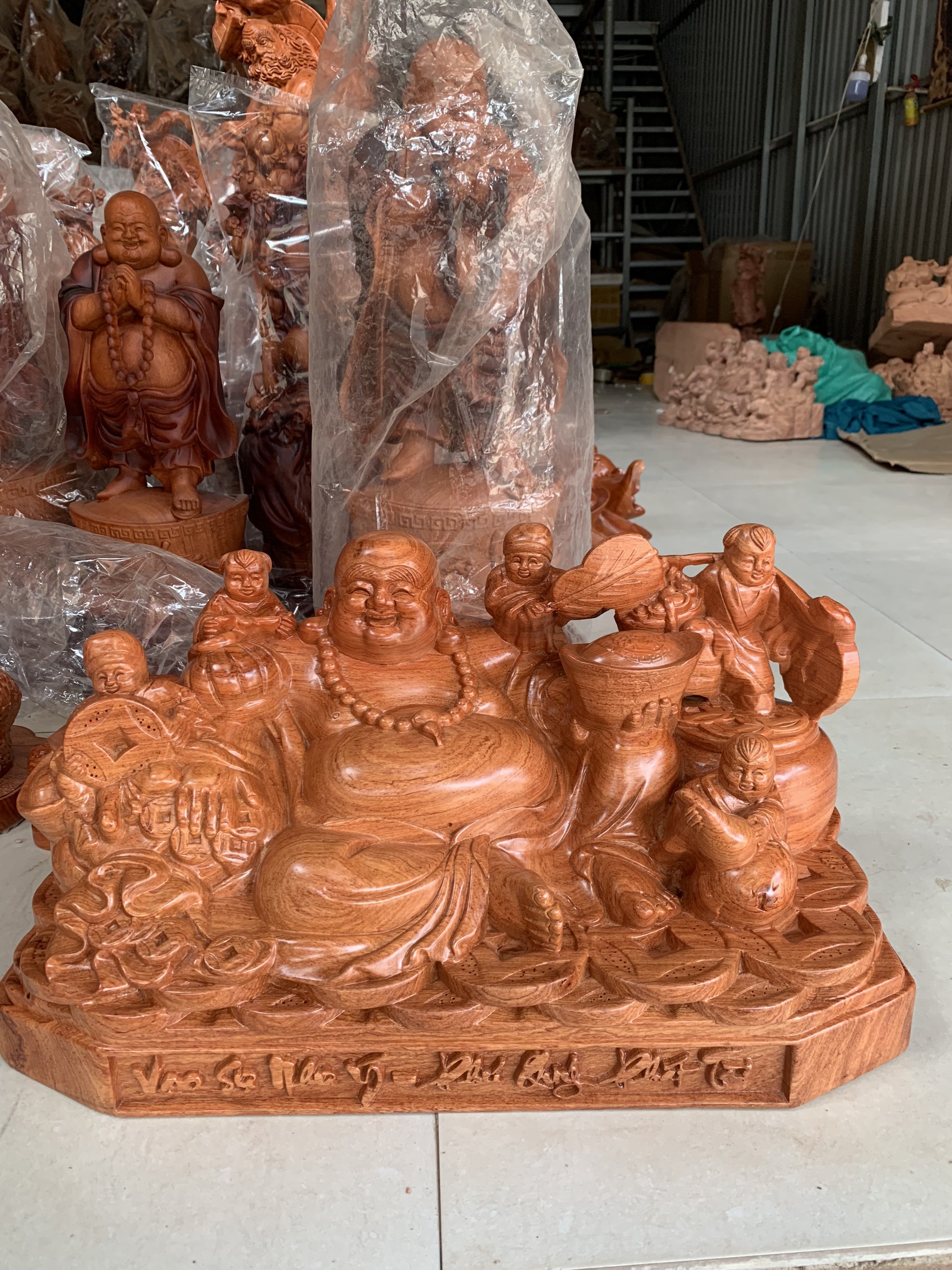 - Tượng phật di lặc ngũ phúc được làm bằng chất liệu gỗ hương đá liền khối tự nhiên 100% ,Và được sơn pu làm bóng mờ để giữ lại mầu sắc vân gỗ tự nhiên Kích thước 60×30×30cm _ Tượng phật di lặc ngũ phúc được trạm khắc tỉ mỉ tinh sảo kỳ công .Tượng được làm và hoàn thiện do bàn tay khối óc tài hoa ,Từ những người thợ dầy rặn kinh nghiệm ,Cũng như tay nghề cao trong làng nghề truyền thống .Chính vì tượng phật di lặc ngũ phúc đã đáp ứng đầy đủ những tiêu trí ( Đẹp bền rẻ ) Thẩm mỹ nghệ thuật với chất lượng tuyệt vời