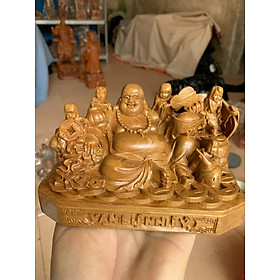 Tượng phật di lặc ngũ phúc rộng 15cm gỗ bách xanh