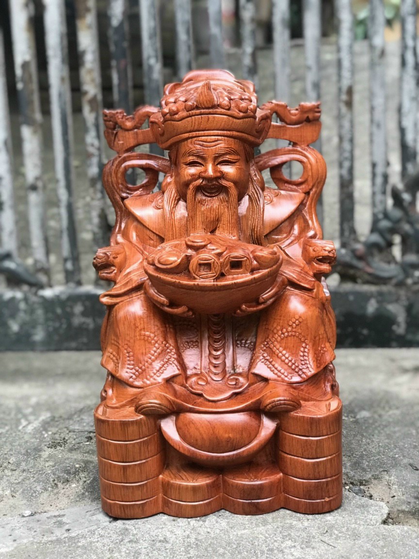 Tượng thần tài thổ địa cao từ 15cm đến 30cm làm bằng gỗ hương đá