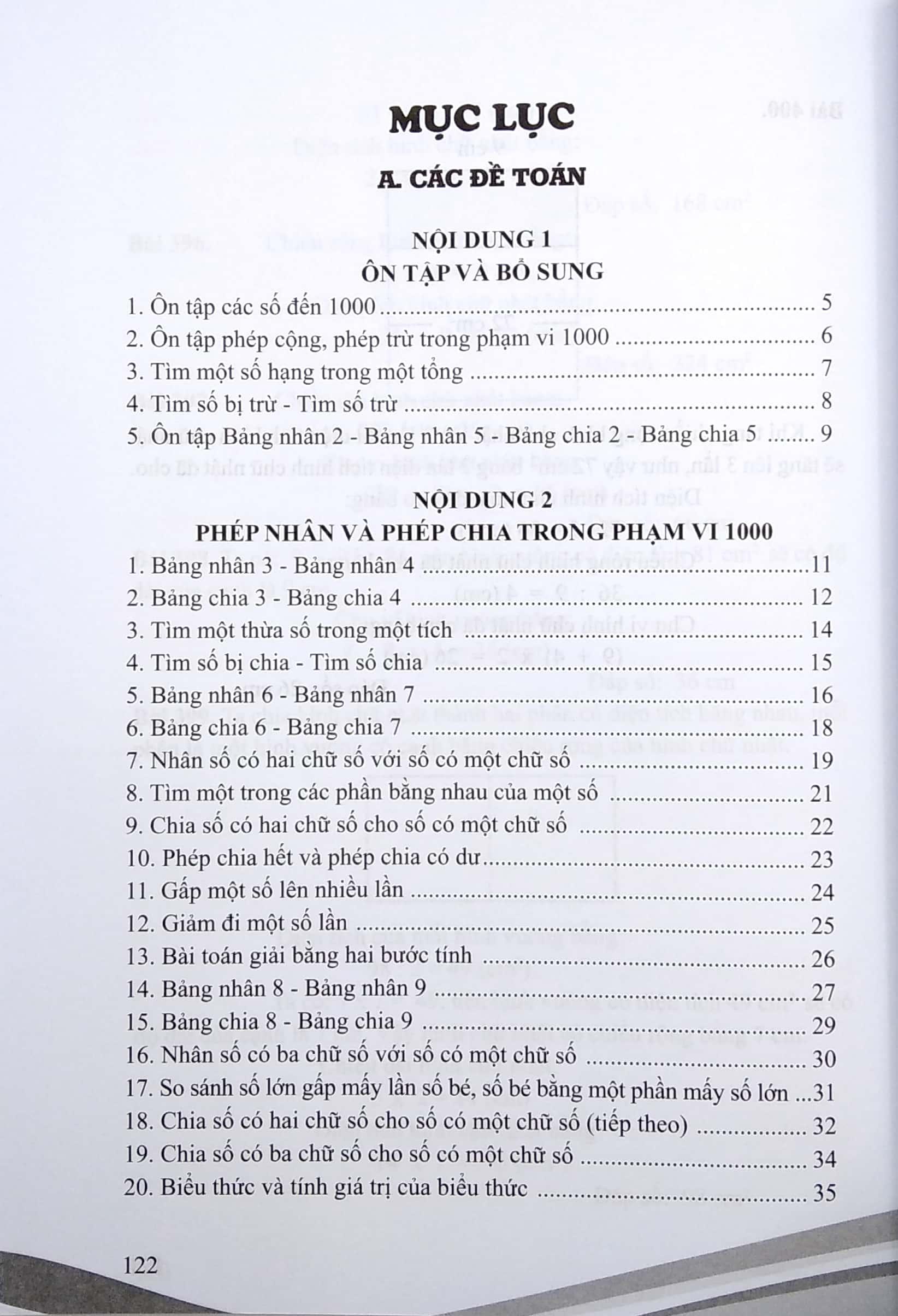 Quyển sách TUYỂN CHỌN 400 BÀI TẬP TOÁN 3 là tài liệu tham khảo rất cần thiết cho học sinh, giúp các em củng cố kiến thức, rèn luyện kỹ năng giải toán để từ đó học tập tốt môn Toán lớp 3 theo chương trình mới.