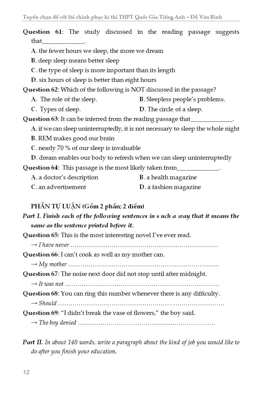 TUYỂN CHỌN ĐỀ CỐT LÕI CHINH PHỤC KỲ THI THPT QUỐC GIA TIẾNG ANH